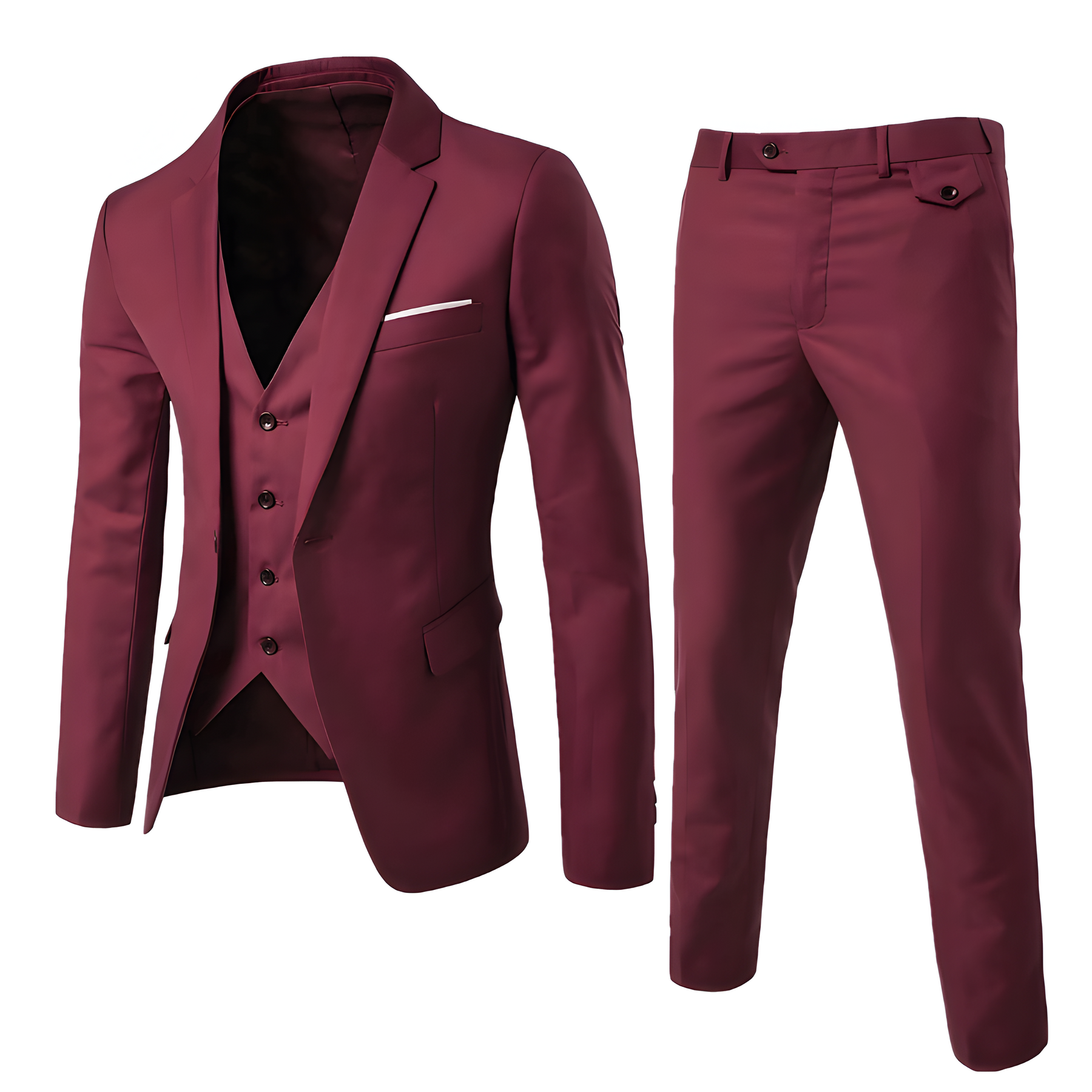 Dreiteiliges Komplettset: Sakko, Weste und Hose ergeben ein harmonisches Outfit mit klarer Linienführung.