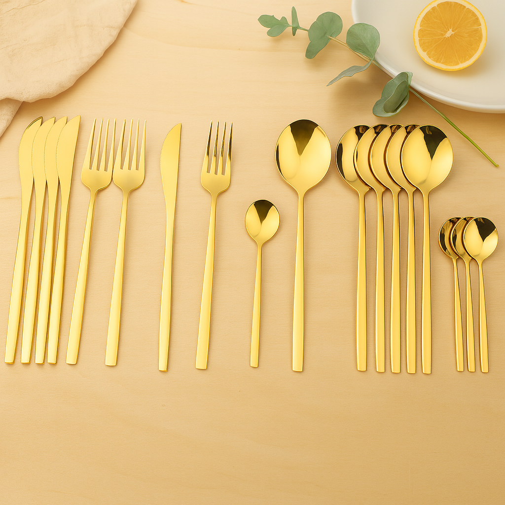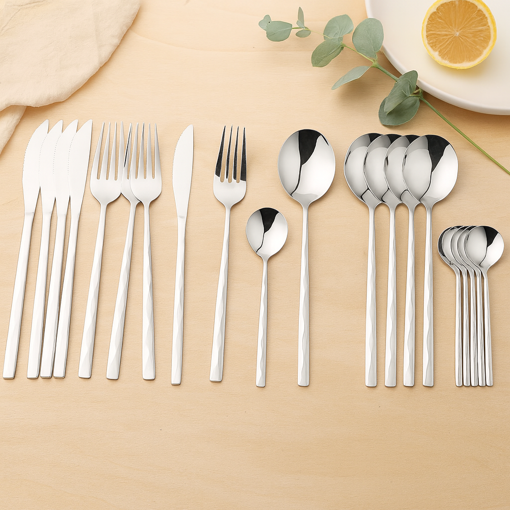 Komplette 24-teilige Kollektion – Beinhaltet Tafelmesser, Gabeln, Löffel und Teelöffel.