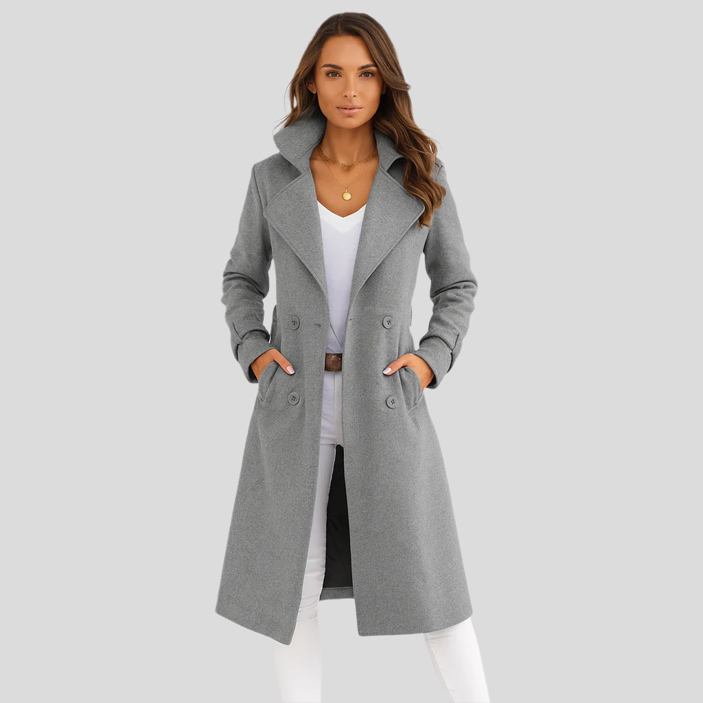 Dieser lange Mantel mit markantem Reverskragen und klassischem Zweireiher bietet eine schicke, schmeichelhafte Passform, die perfekt zu Kleidern, Hosen oder lässigen Jeans passt. Ob im Büro, beim Abendessen oder beim Stadtbummel – der Eloise Mantel strahlt mühelose Eleganz aus.
