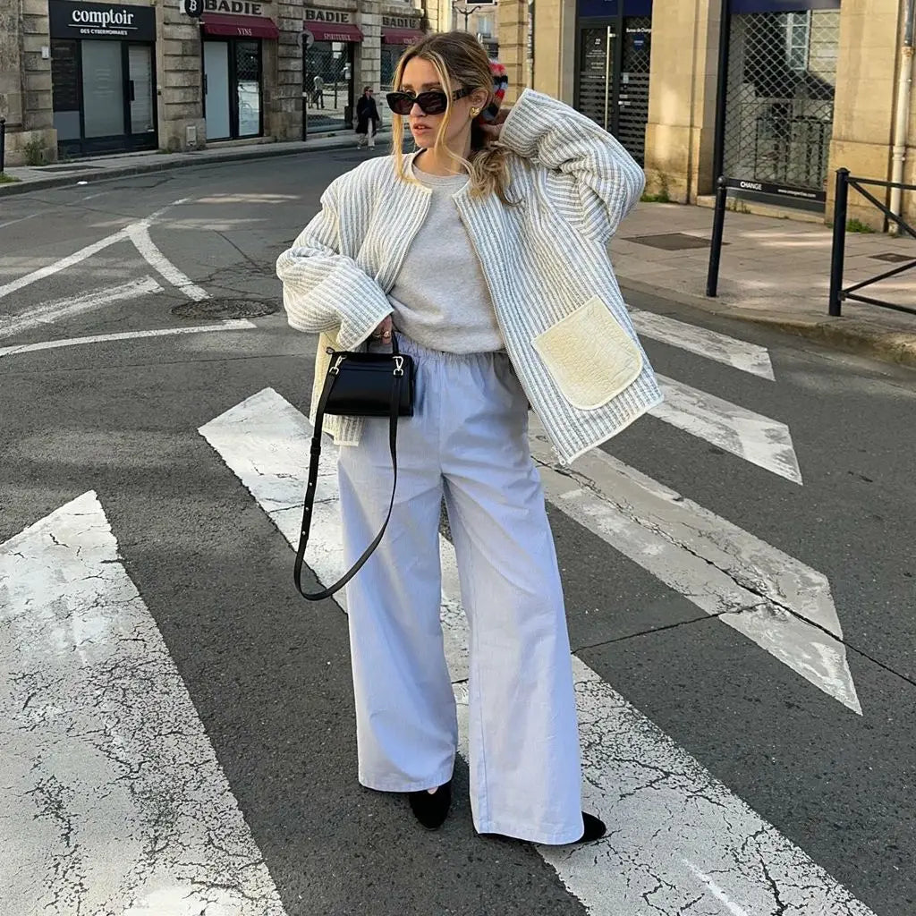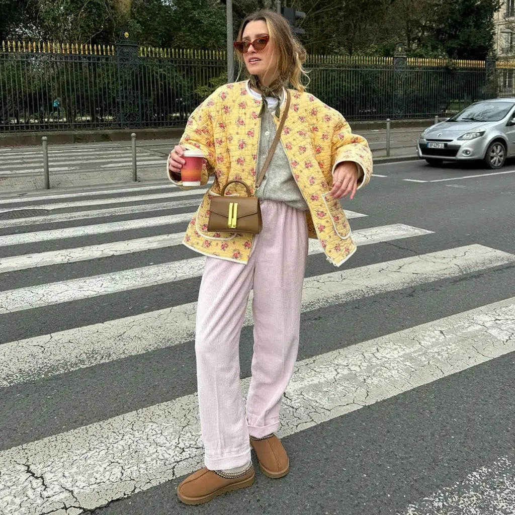 Bewältige kalte Tage mit Leichtigkeit in diesem leichten gepolsterten Layer, der alltägliche Funktionalität mit einem unverwechselbaren Stil kombiniert. Die oversized Silhouette bietet eine entspannte Eleganz, während die großen Taschen praktische Nützlichkeit mit modernem Charme vereinen. Hergestellt aus einem weichen und gemütlichen Stoff, hält sie dich warm, ohne zusätzliches Volumen hinzuzufügen. Ob du zu einem Brunch gehst oder shoppen gehst, diese Jacke vervollständigt deinen Look mit einem Hauch von natürlicher Eleganz.