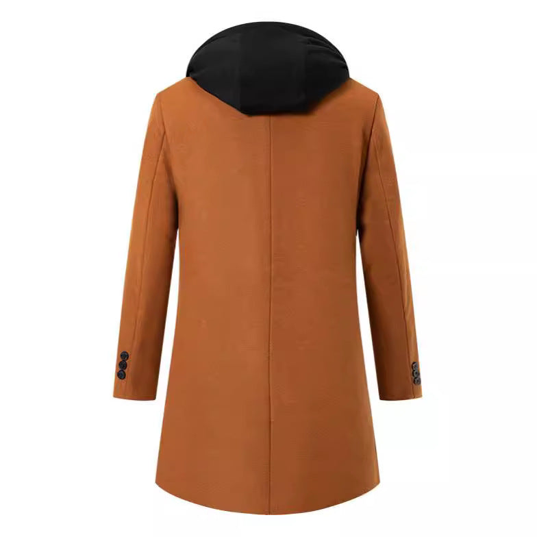 Herren eleganter Melton-Mantel mit abnehmbarer Kapuze und praktischen Taschen Aliams