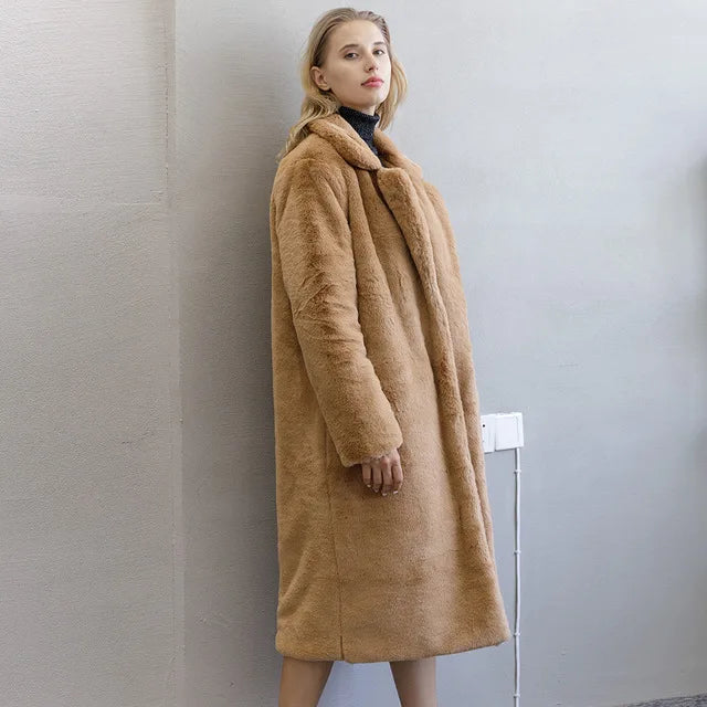 Der Langer Wintermantel aus Kunstfell bietet nicht nur luxuriöse Wärme, sondern auch stilvolle Eleganz. Mit seinem zeitlosen Design und der exzellenten Verarbeitung ist dieser Mantel die perfekte Wahl für Frauen, die auch in der kalten Jahreszeit chic bleiben möchten.