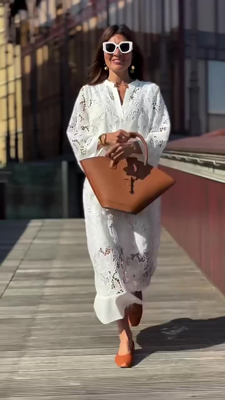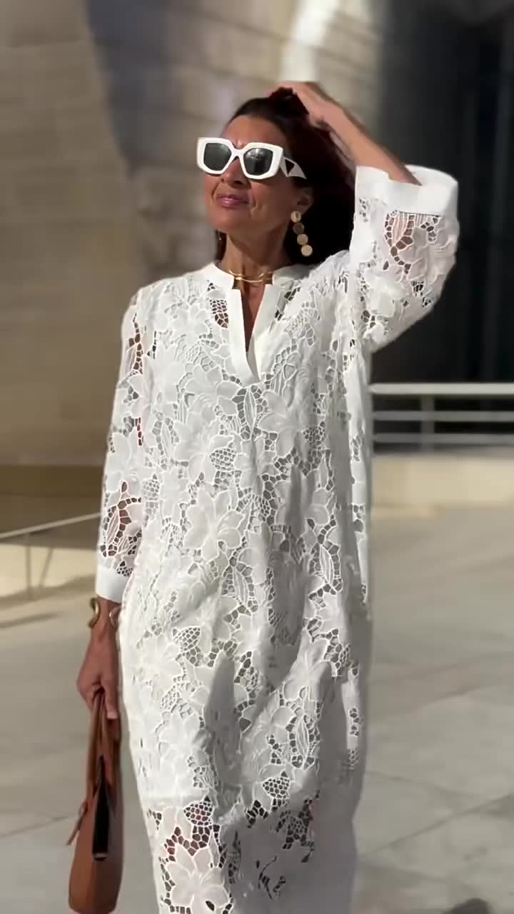 Darf ich vorstellen: das Marites Dress™. Dieses Kleid ist für Frauen gedacht, die einen schlichten und gepflegten Look lieben. Die feinen Spitzendetails und der fließende Schnitt verleihen ihm eine subtile Eleganz.