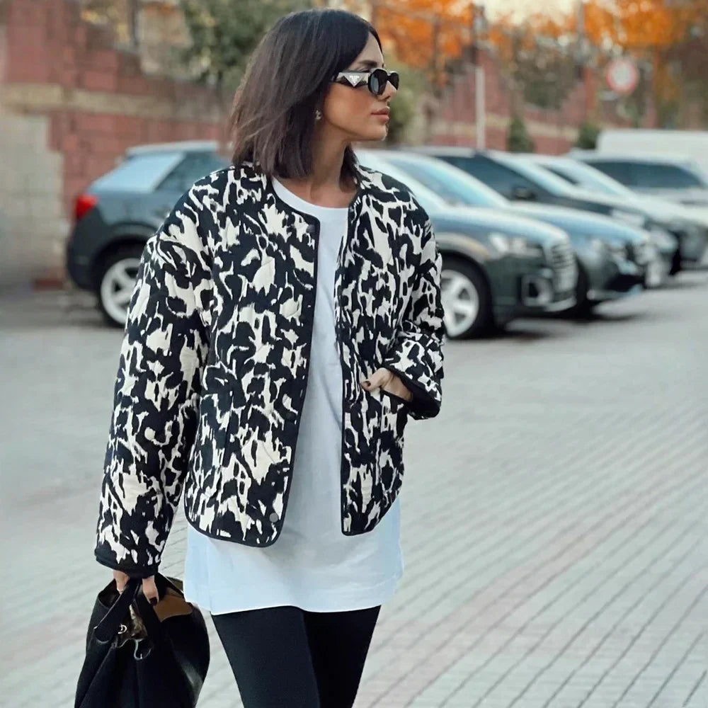 Bewältige kalte Tage mit Leichtigkeit in diesem leichten gepolsterten Layer, der alltägliche Funktionalität mit einem unverwechselbaren Stil kombiniert. Die oversized Silhouette bietet eine entspannte Eleganz, während die großen Taschen praktische Nützlichkeit mit modernem Charme vereinen. Hergestellt aus einem weichen und gemütlichen Stoff, hält sie dich warm, ohne zusätzliches Volumen hinzuzufügen. Ob du zu einem Brunch gehst oder shoppen gehst, diese Jacke vervollständigt deinen Look mit einem Hauch von natürlicher Eleganz.