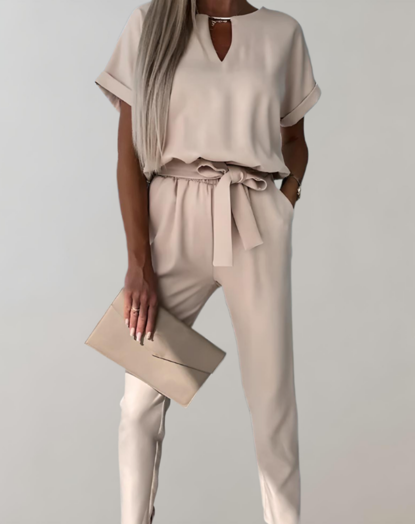 Gefertigt aus weichen, atmungsaktiven Materialien bietet der Jumpsuit höchsten Tragekomfort und Bewegungsfreiheit. Das schicke Design unterstreicht Ihre Figur, während der entspannte Schnitt für ein angenehmes Tragegefühl sorgt. Dank der vielseitigen Farboptionen können Sie den Jumpsuit nach Ihrem persönlichen Stil kombinieren – ob leger mit Sneakers oder elegant mit hohen Schuhen.