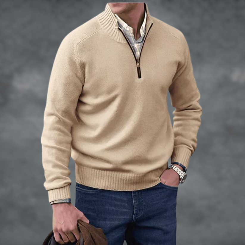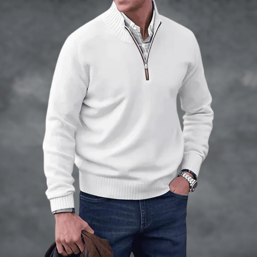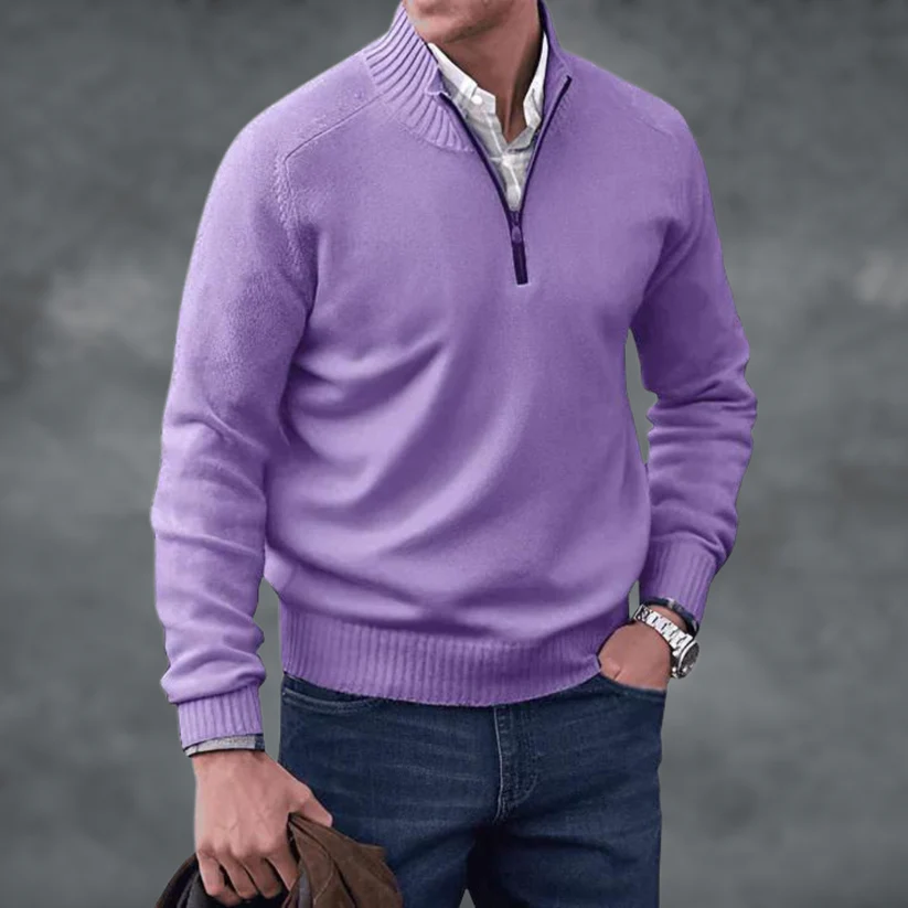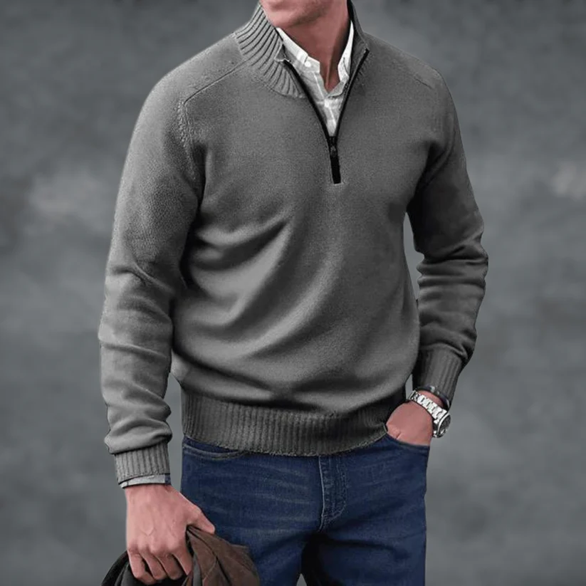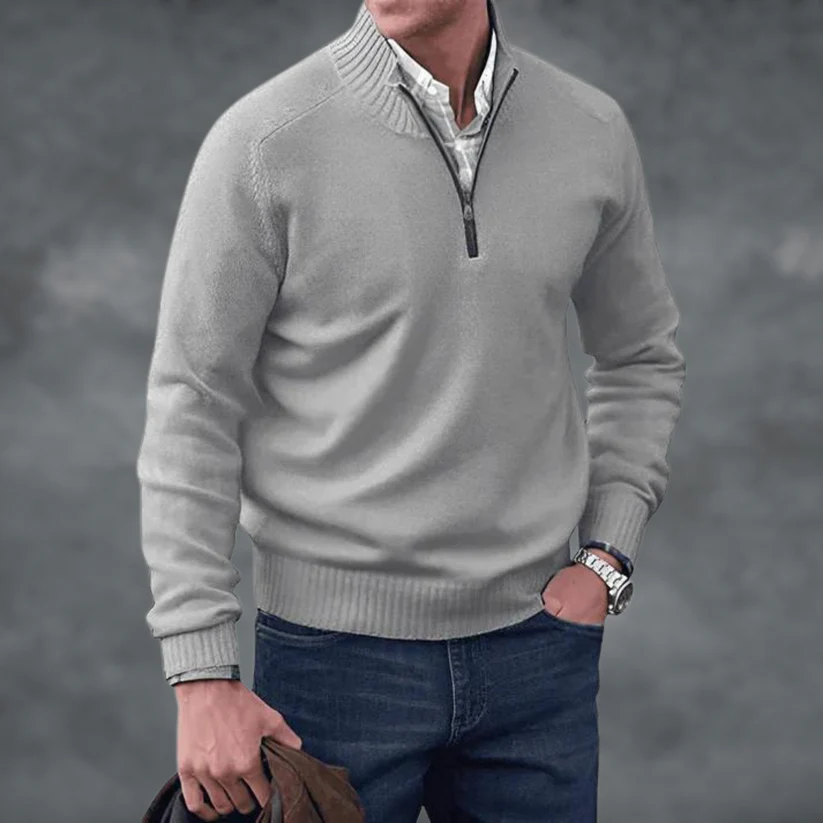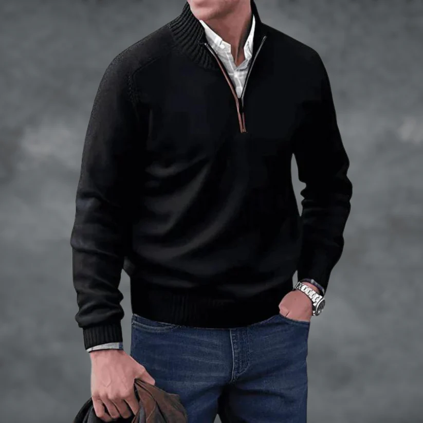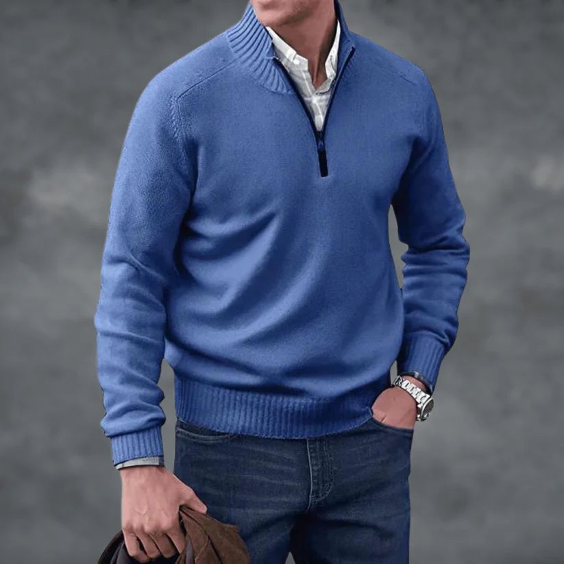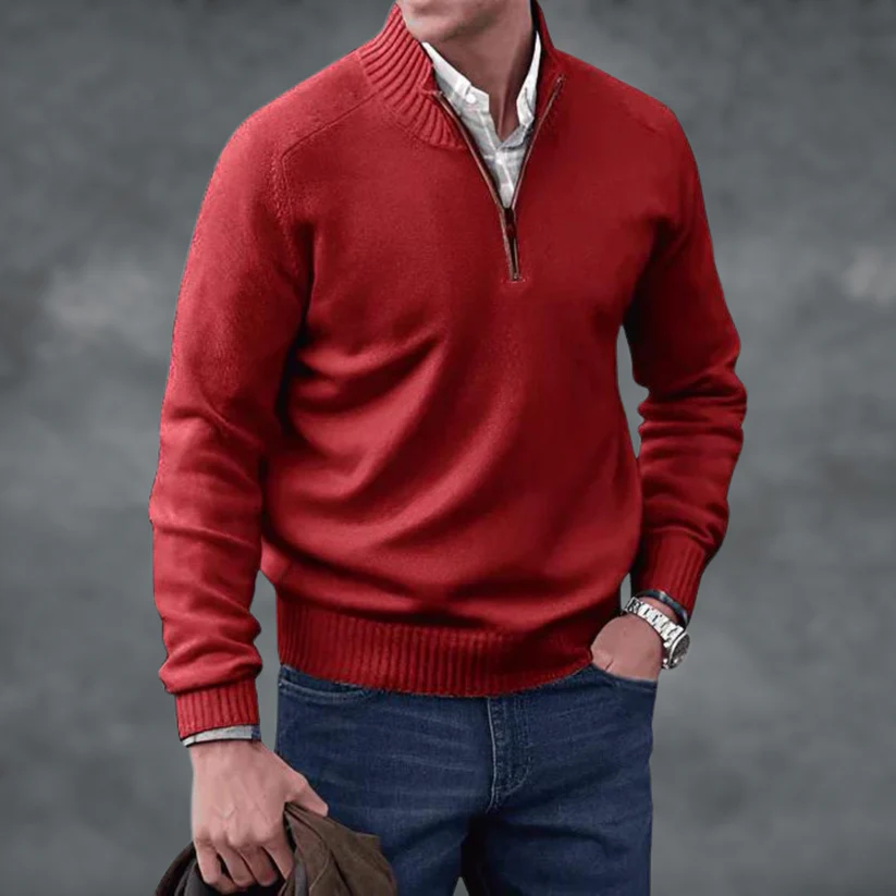 Waylen - Herren Pullover mit geripptem Kragen und Viertel-Reißverschluss