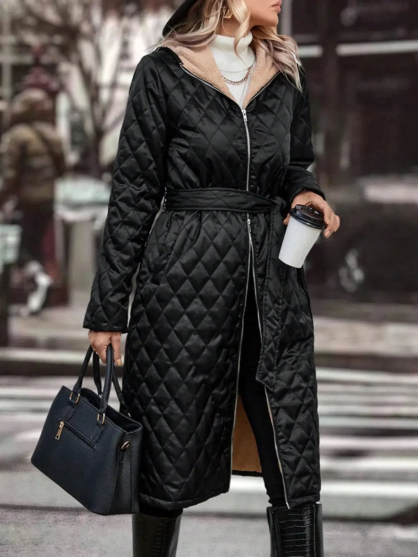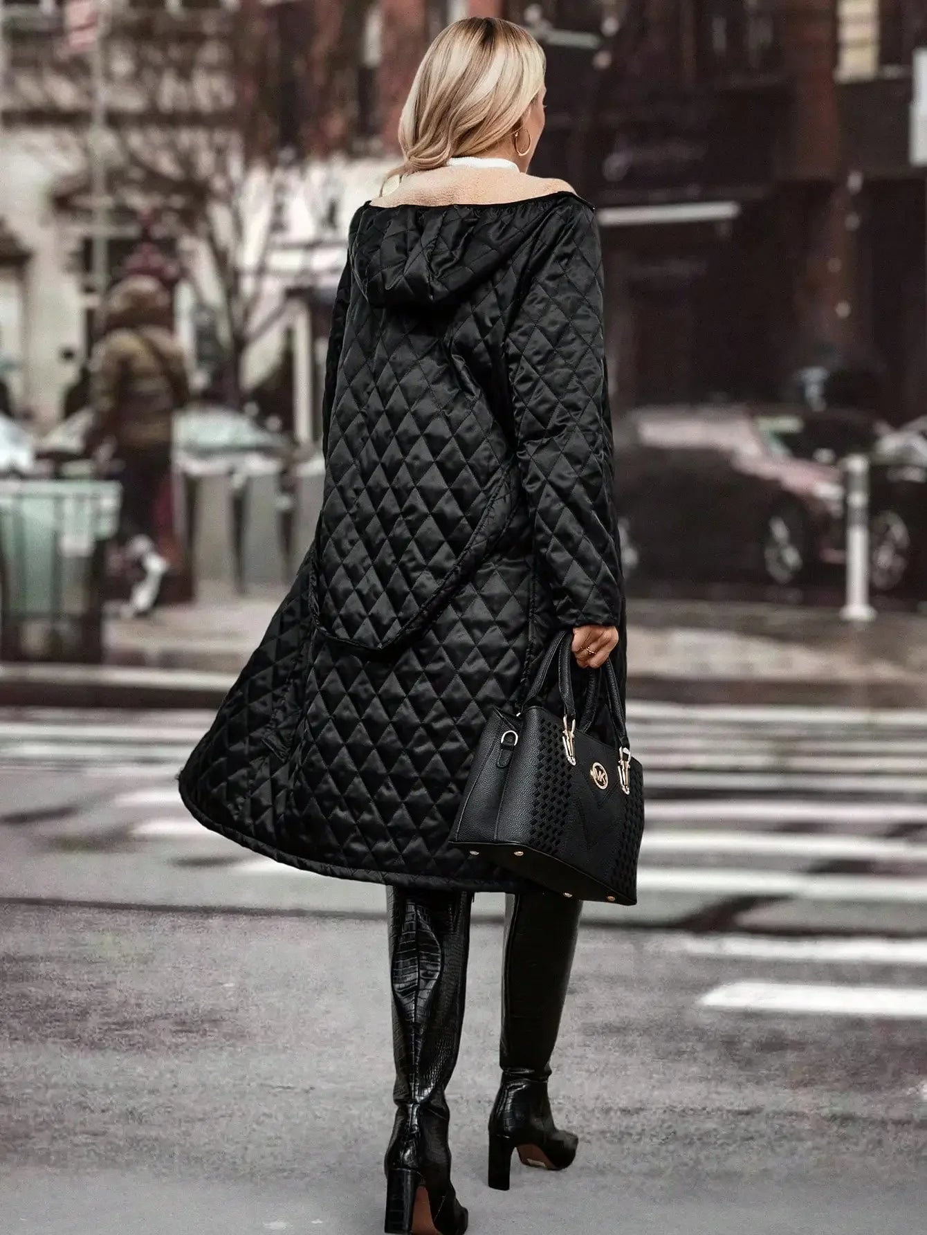 Das stilvolle Steppmuster und die warme Kapuze bieten Schutz vor Kälte und verleihen Ihrem Look eine raffinierte Note. Perfekt für elegante Spaziergänge oder urbane Abenteuer – dieser Mantel ist ein unverzichtbares Highlight für Ihre Garderobe.