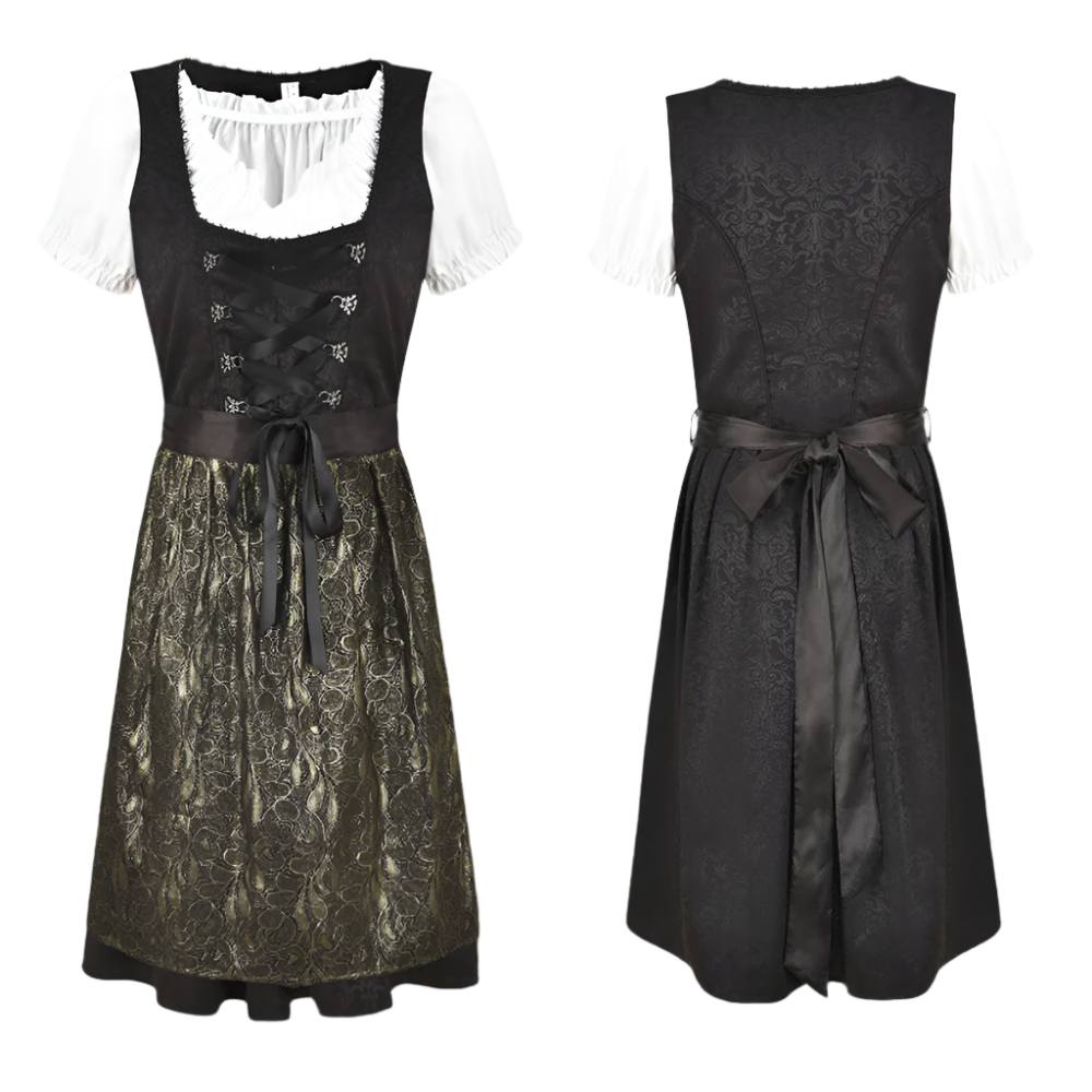 Dieses Dirndl verbindet klassische Trachtenkultur mit frischem Design für einen eleganten Auftritt auf jedem Fest. Die taillierte Passform betont die Figur, während die kontrastreiche Schürze und filigrane Zierschnürung für einen authentischen Look sorgen. Die farblich abgestimmten Elemente unterstreichen die Detailverliebtheit und machen das Modell zu einem Blickfang. Ob auf dem Oktoberfest, einer Hochzeit oder einer Sommerparty, dieses Dirndl bringt Stil und Tradition perfekt in Einklang.