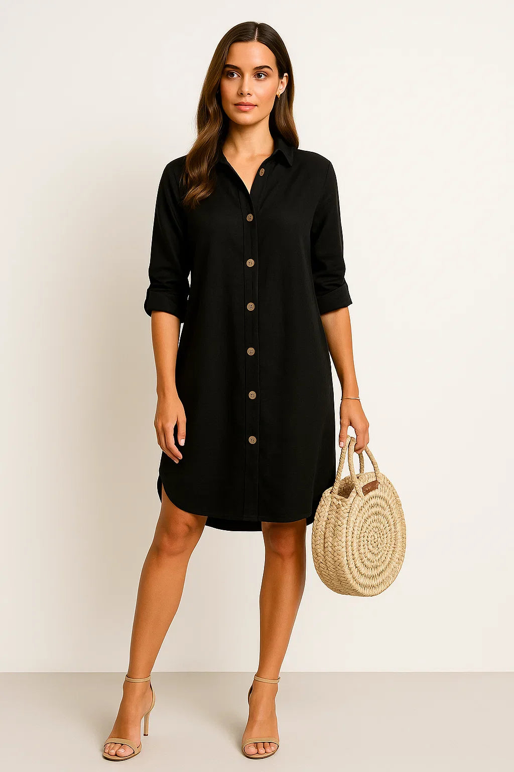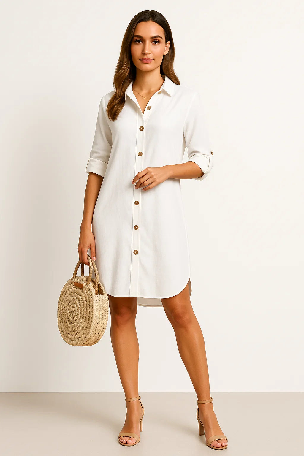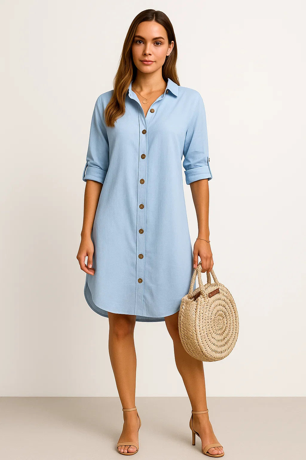 Dieses stilvolle Hemdblusenkleid vereint lockeren Komfort mit einem Hauch urbaner Eleganz. Die durchgehende Knopfleiste und die aufgerollten Ärmel sorgen für eine moderne Silhouette, die gleichzeitig entspannt und stilbewusst wirkt. Ideal für warme Tage, lässt sich das Kleid vielseitig kombinieren, ob solo getragen oder offen über einer Hose. Es bietet dir genau die Bewegungsfreiheit und Leichtigkeit, die du an langen Sommertagen brauchst.