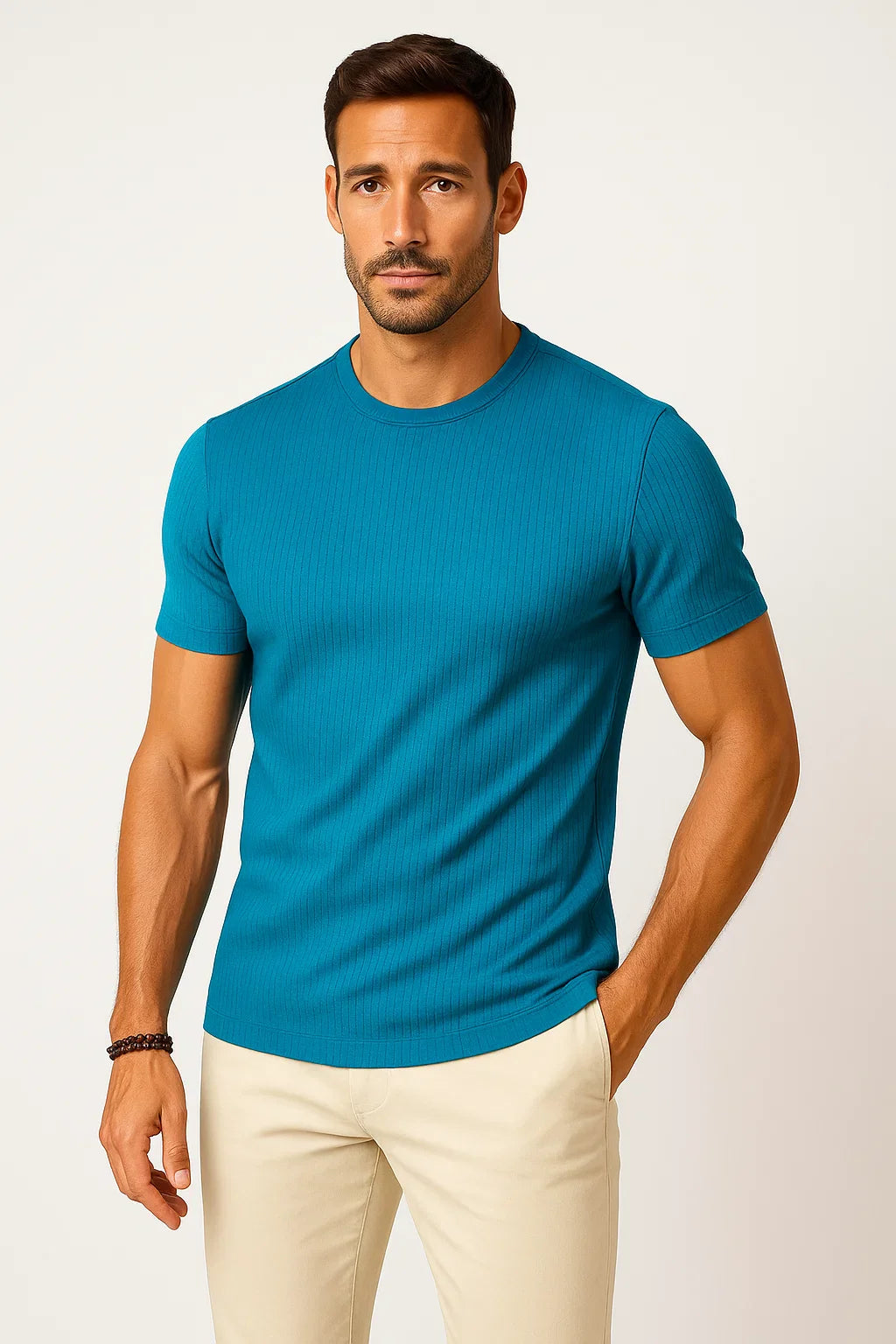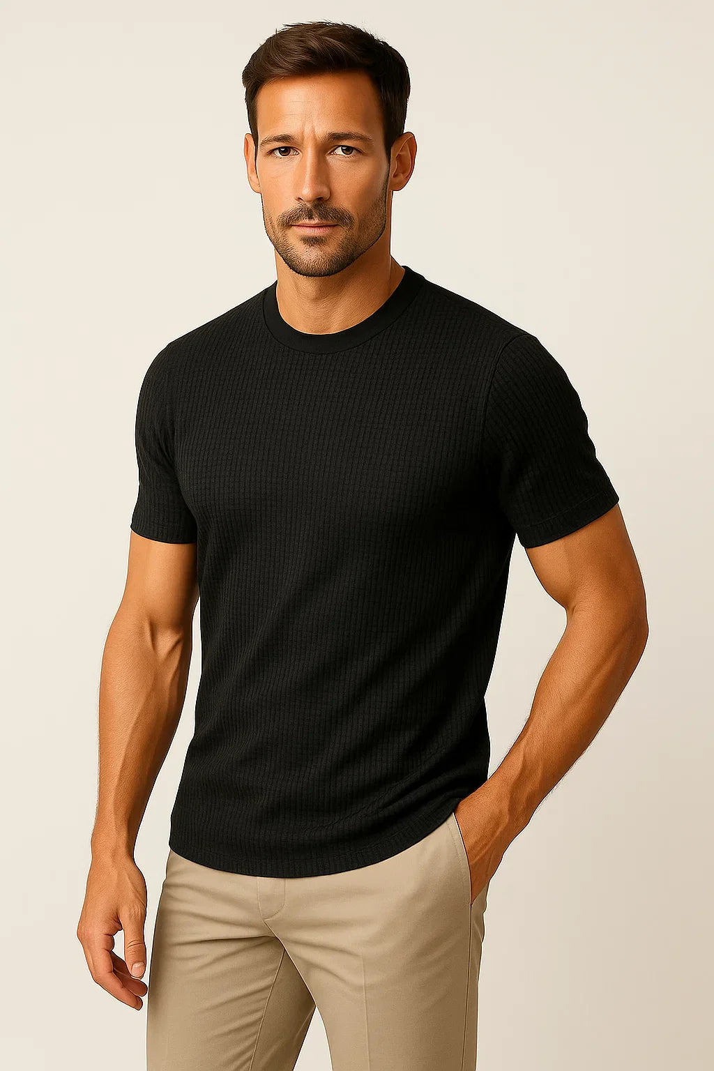Das Lars Waffelstruktur T-Shirt kombiniert modernes Design mit sportlicher Lässigkeit und sorgt für einen stilvollen Auftritt in jeder Gelegenheit. Mit seinem dezenten Waffelmuster und körperbetonten Schnitt passt es perfekt zu deinem aktiven Lifestyle. Der elastische Stoff sorgt für eine angenehme Passform und hohen Tragekomfort, während die atmungsaktive Materialstruktur für Wohlfühltemperaturen sorgt.