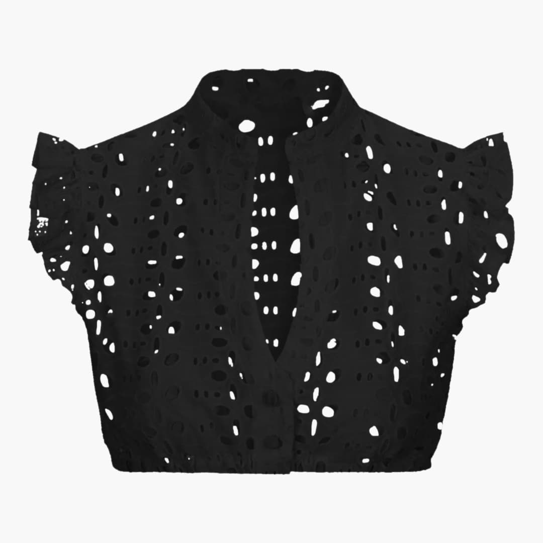 Strukturiertes Muster: Durchgehende Lochstickerei sorgt für eine feine, gleichmäßige Oberflächenoptik.