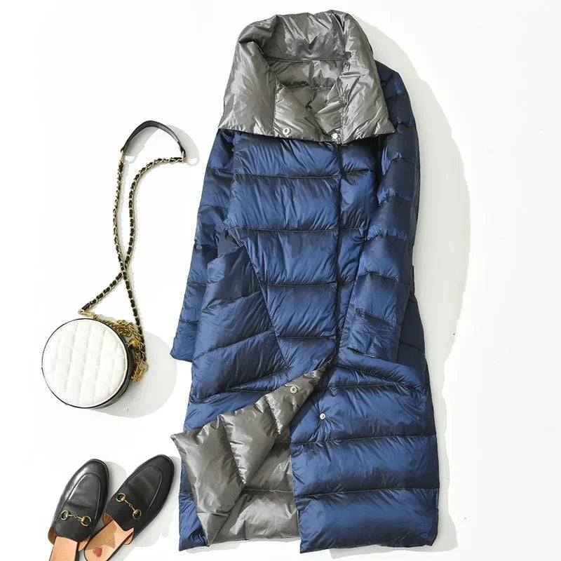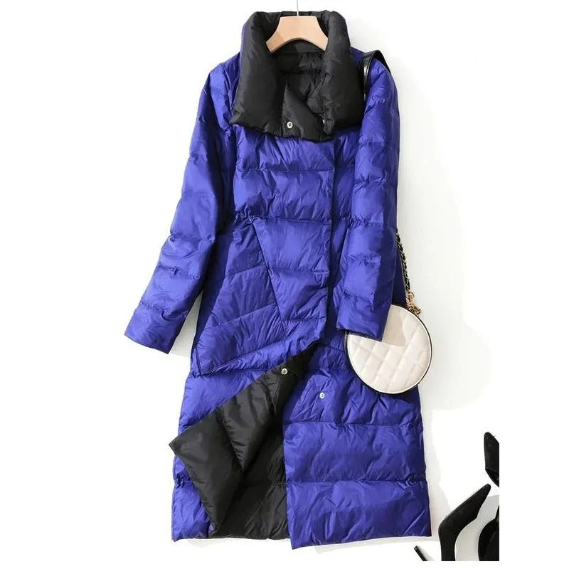 Der Celina® Schicker Zweifarbiger Steppmantel vereint Wärme und Stil durch sein trendiges zweifarbiges Design. Die elegante Kombination aus erdigen Tönen und schwarzem Innenfutter verleiht ihm einen raffinierten Look, ideal für die kältere Jahreszeit.