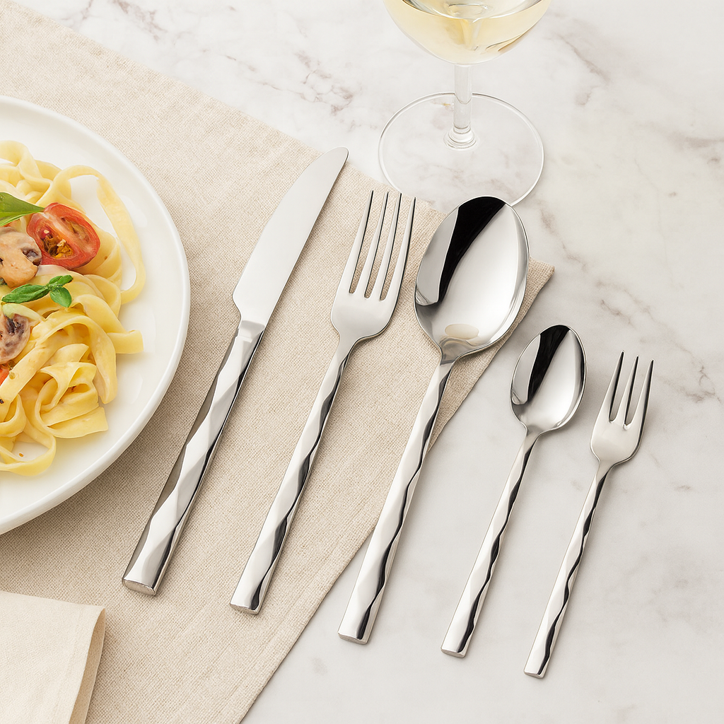 • 30-teiliges Komplettset – bestehend aus Tafelmessern, -gabeln, -löffeln, -dessertgabeln und -teelöffeln.