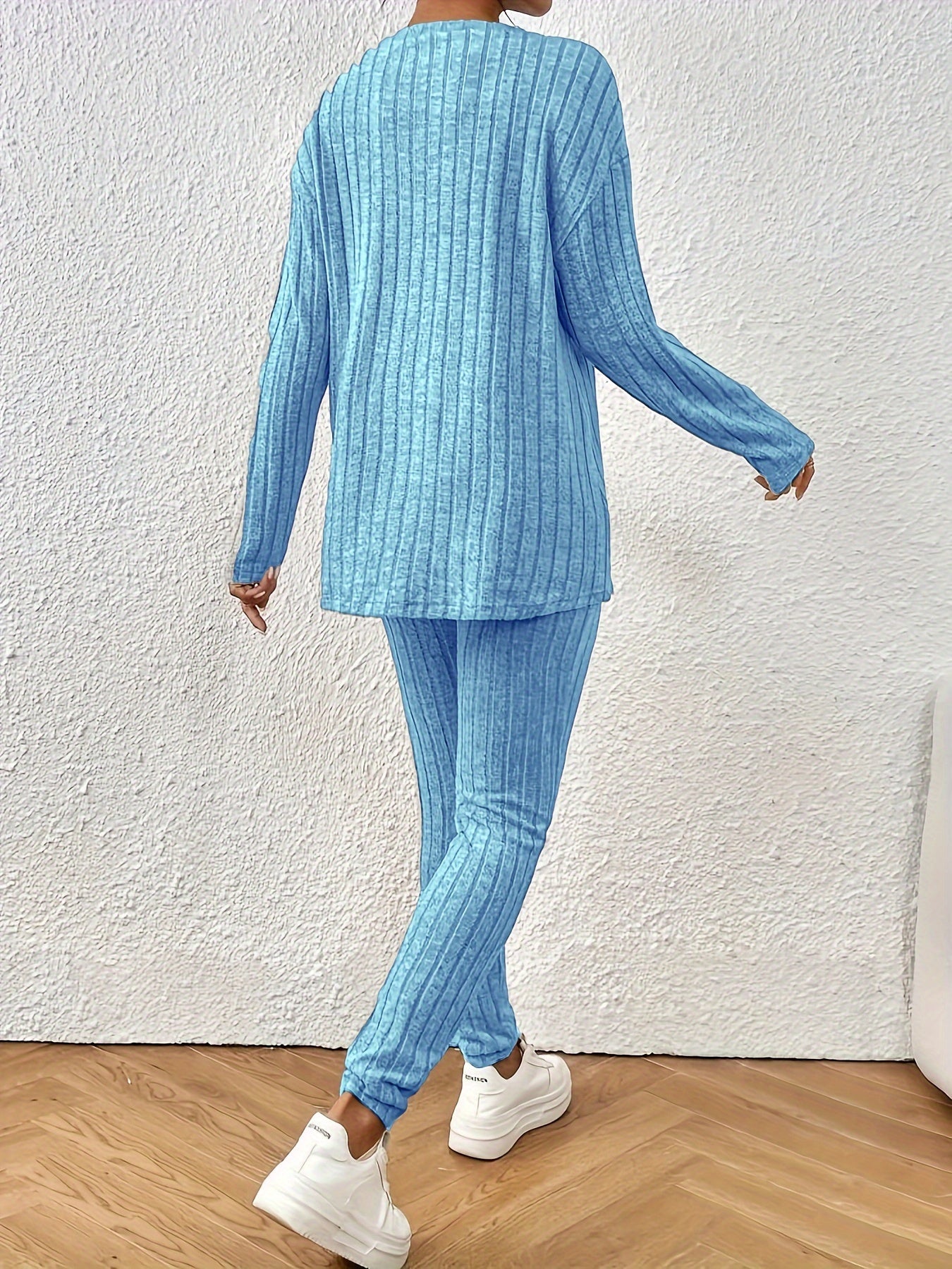 Damen Freizeit-Langarm-Rundhals-Oberteil und High-Waist-Skinny-Hosen-Set | Ideal für Active Wear