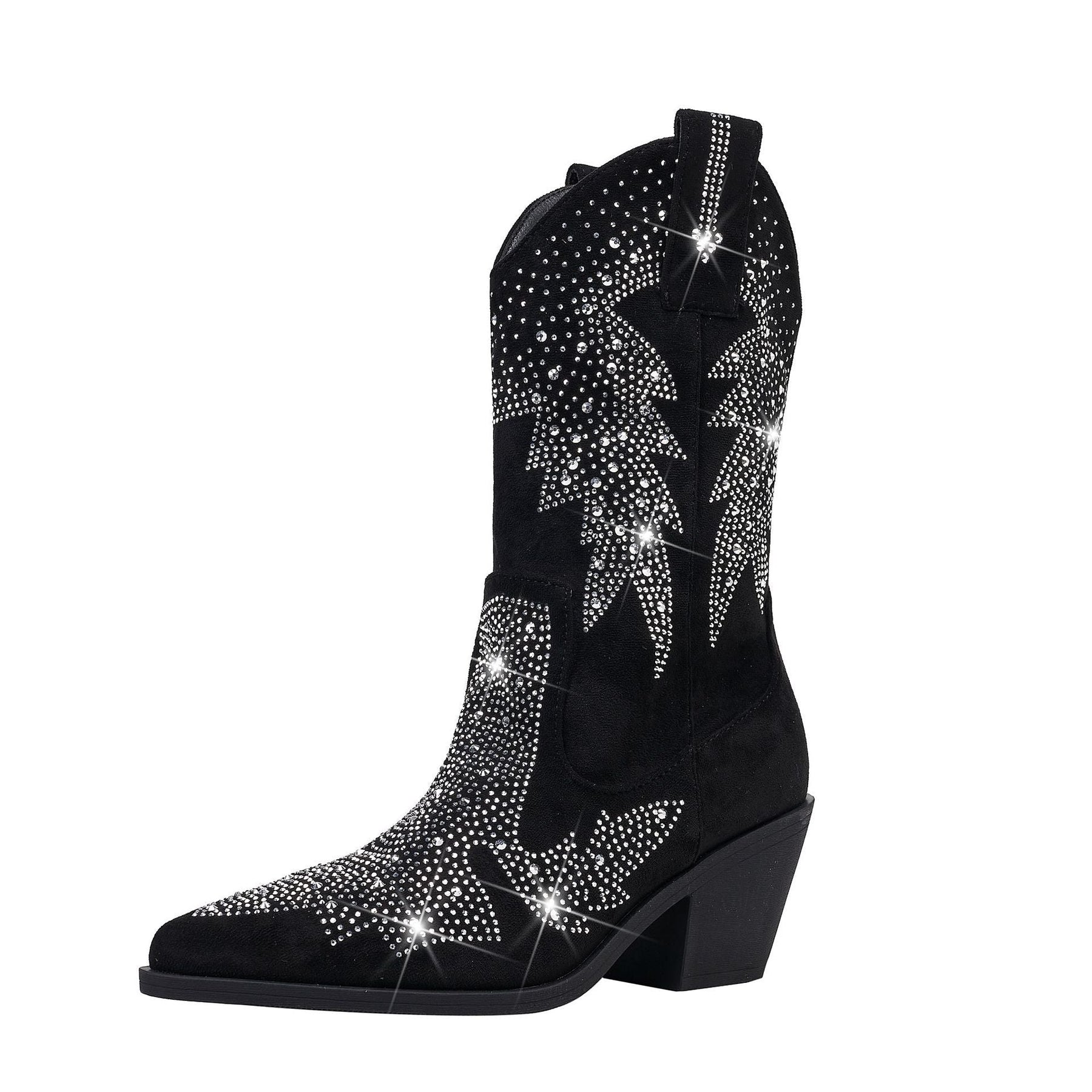 Entfesseln Sie Ihre innere Modeikone mit diesen eleganten Cowboystiefeln für Damen. Mit ihrem hochwertigen Wildleder-Finish und glamourösen Details sind sie der perfekte Begleiter für jeden Anlass, vom Brunch bis zum Abendausgang.