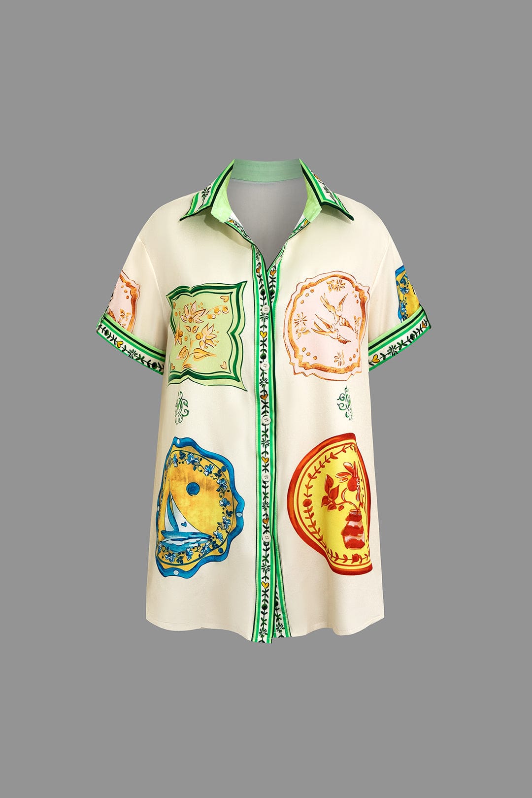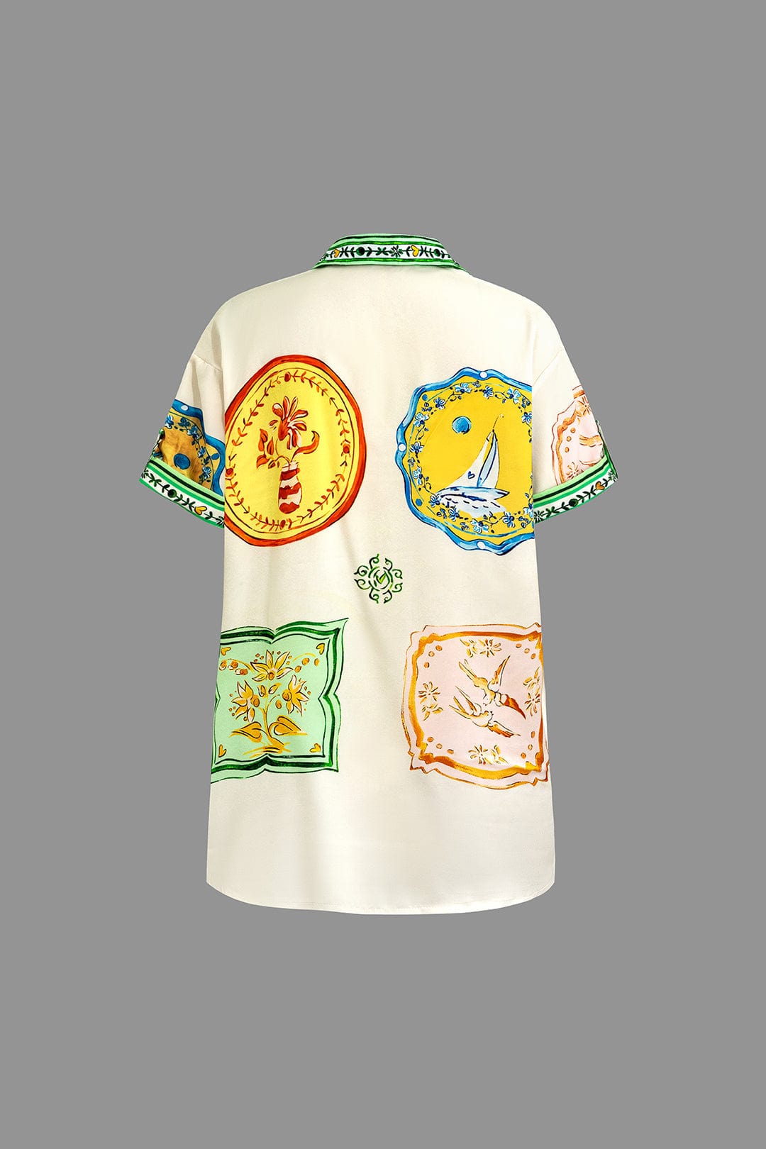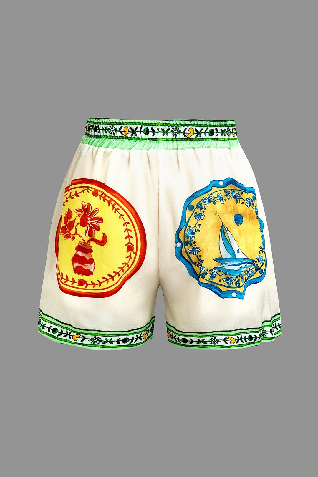 Das Denise Zweiteiler-Set besticht durch sein einzigartiges Print-Design und seine lebendigen Farben. Die kurzärmelige Bluse mit klassischem Kragen und die passenden Shorts sorgen für einen frischen, sommerlichen Look. Das Set ist aus leichtem, atmungsaktivem Stoff gefertigt und bietet optimalen Tragekomfort. Ideal für lässige Tagesoutfits, Sommerpartys oder stilvolle Urlaubslooks.