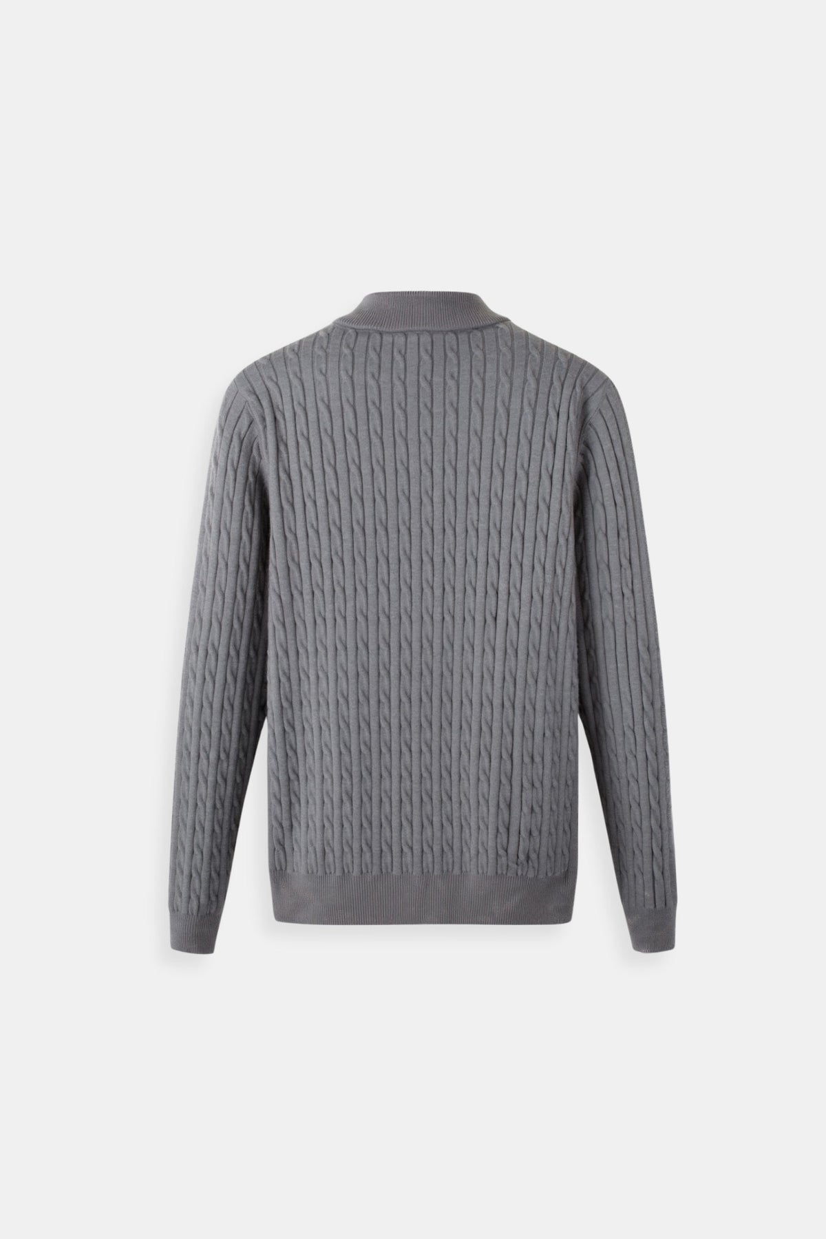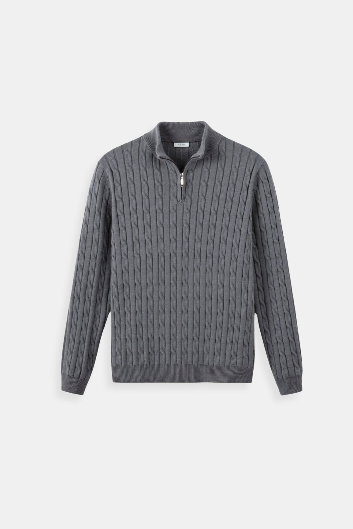 Eleganter Zopfstrickpullover mit Reißverschluss
