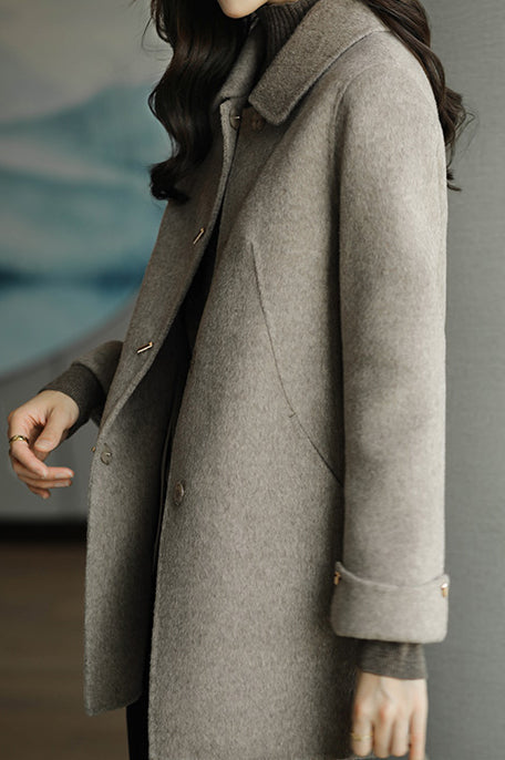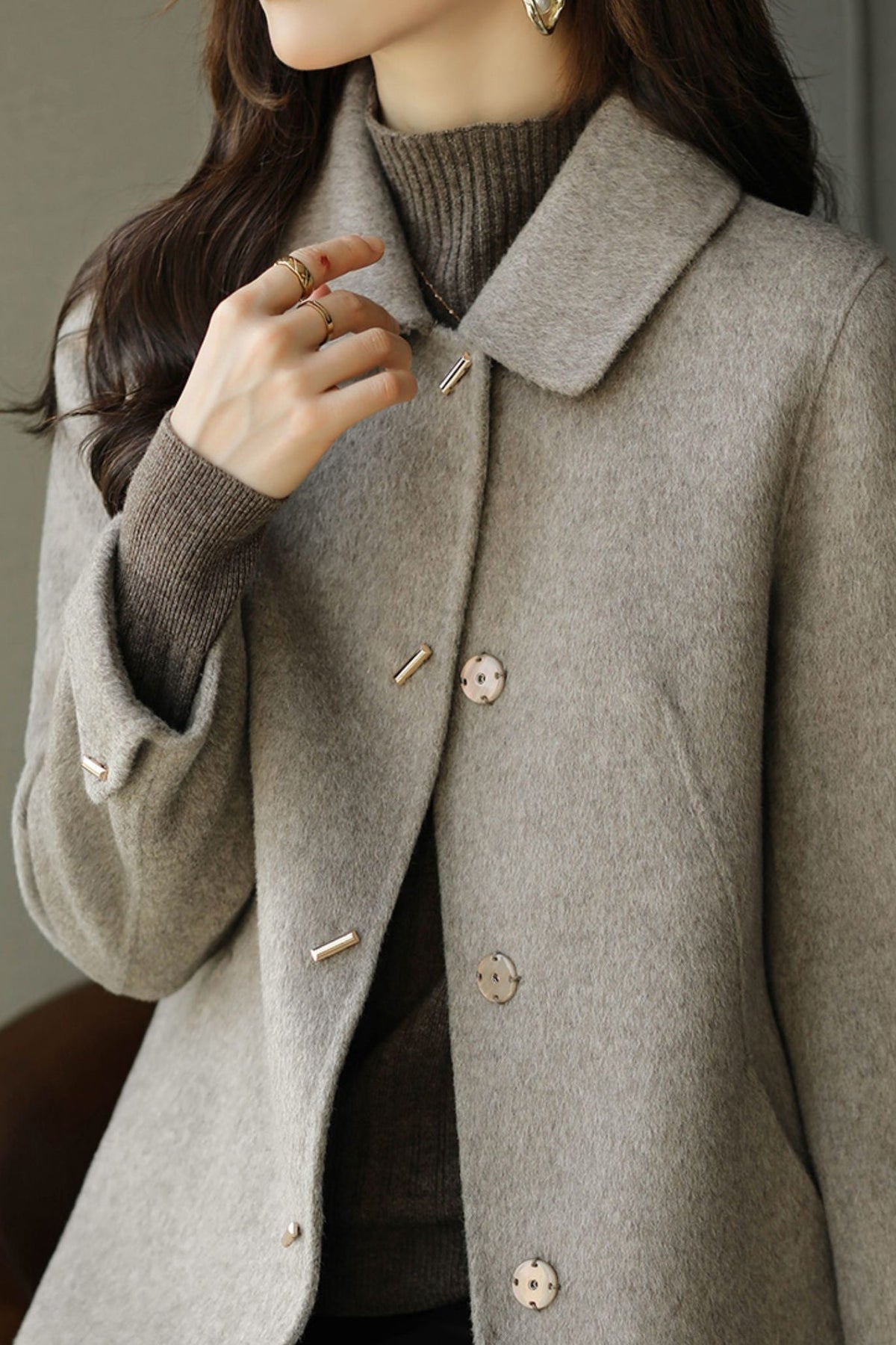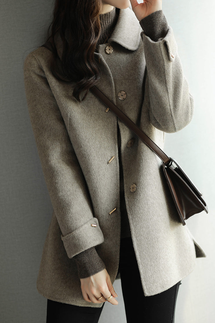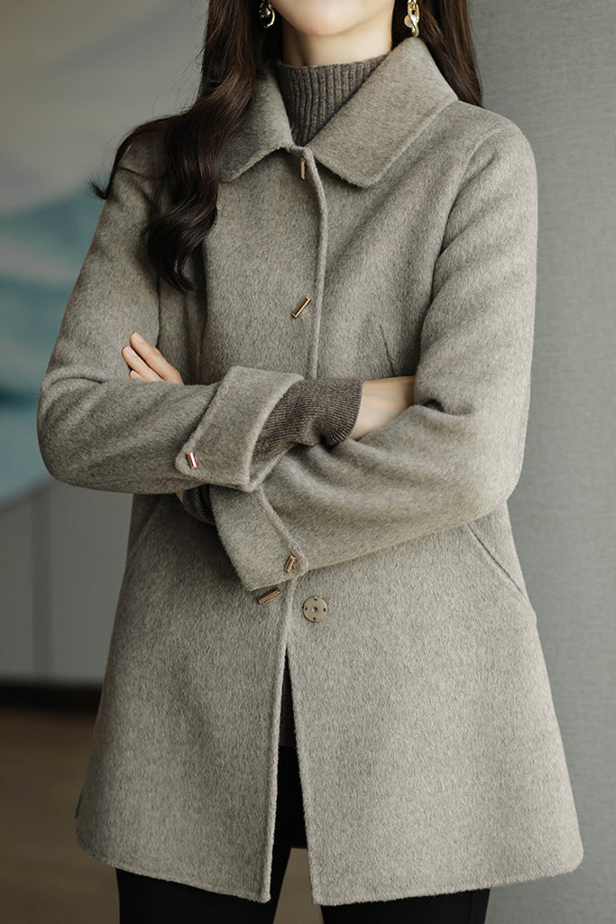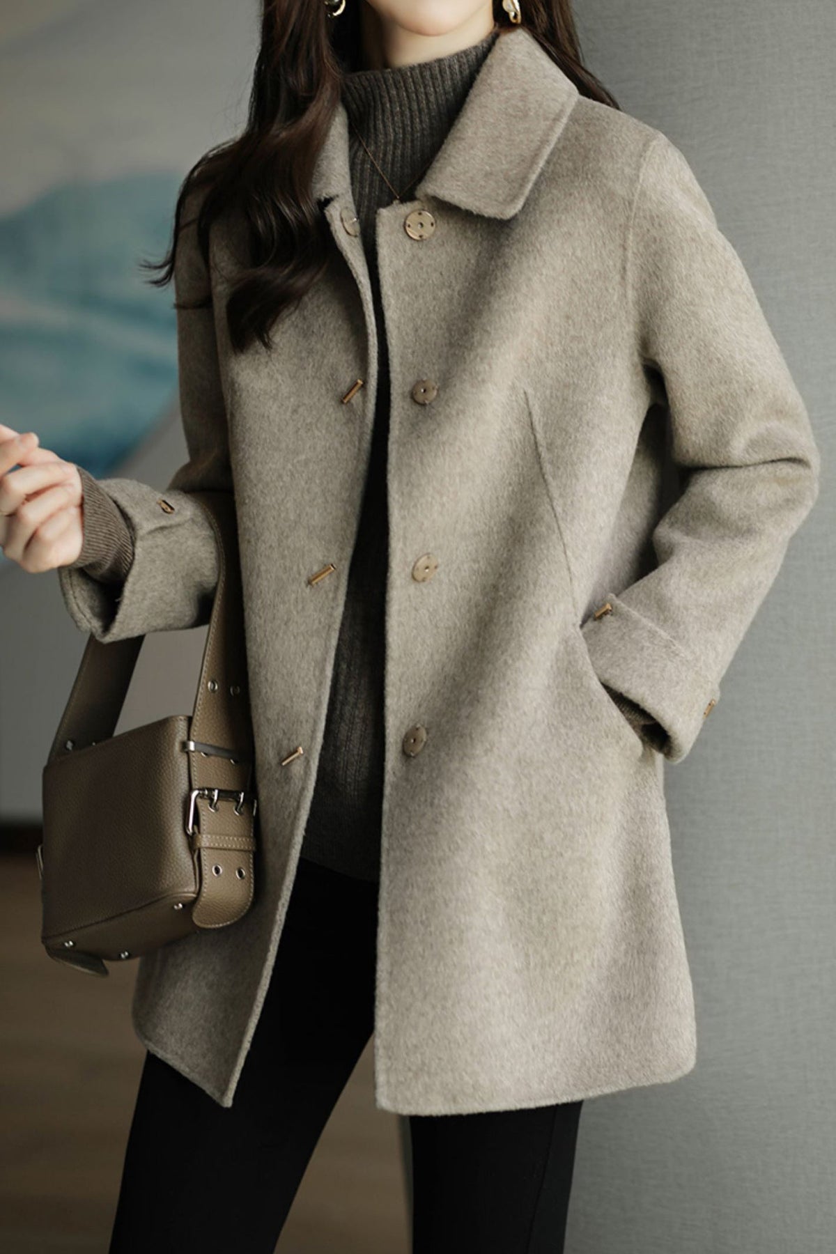 Emily - Eleganter Melton-Mantel mit Stehkragen und umgeschlagenen Manschetten