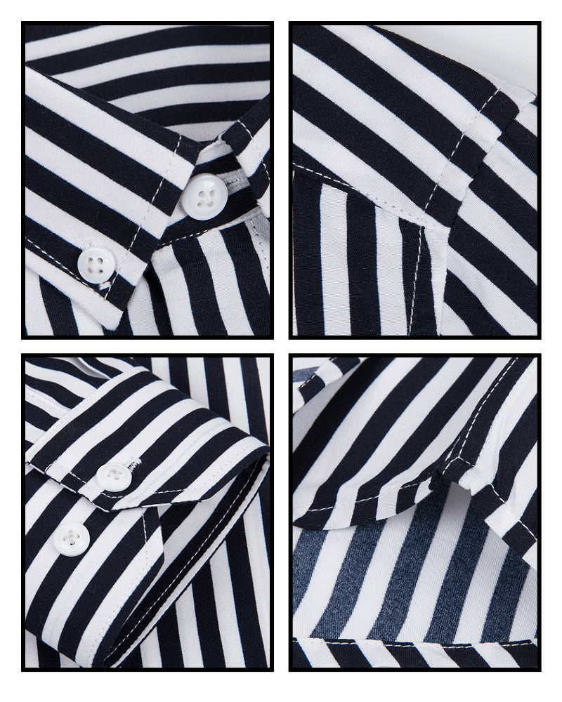 Dieses klassisch gestreifte Business-Hemd verkörpert zeitlose Eleganz und professionelle Raffinesse. Die hochwertige Baumwollmischung sorgt für optimalen Tragekomfort während langer Arbeitstage, während das moderne Streifendesign sich mühelos in Ihre bestehende Business-Garderobe integriert.