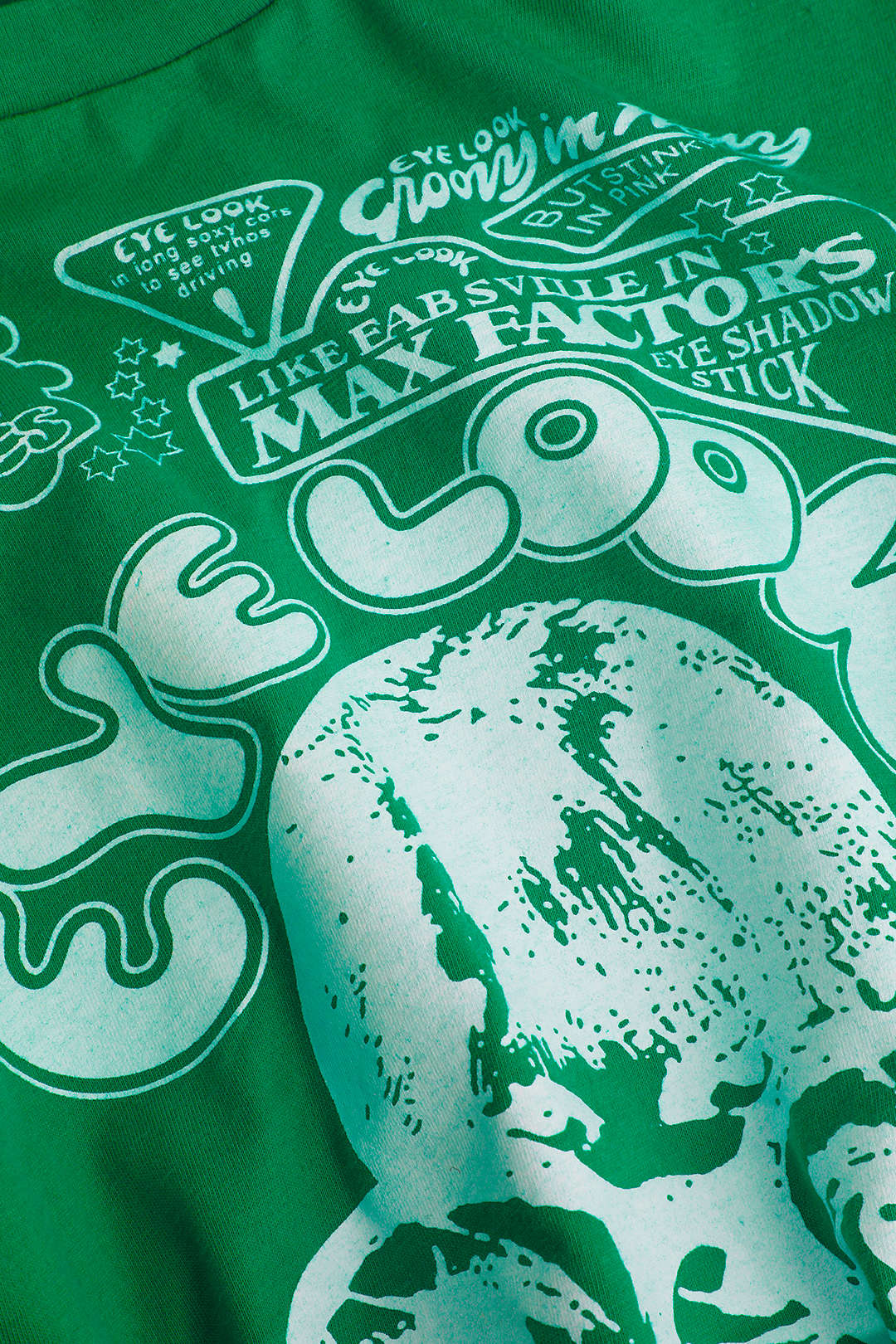 Gracelyn | Hochgekrempelte Ärmel EYE LOOK Grafikdruck Crop-T-Shirt mit Knotendetail
