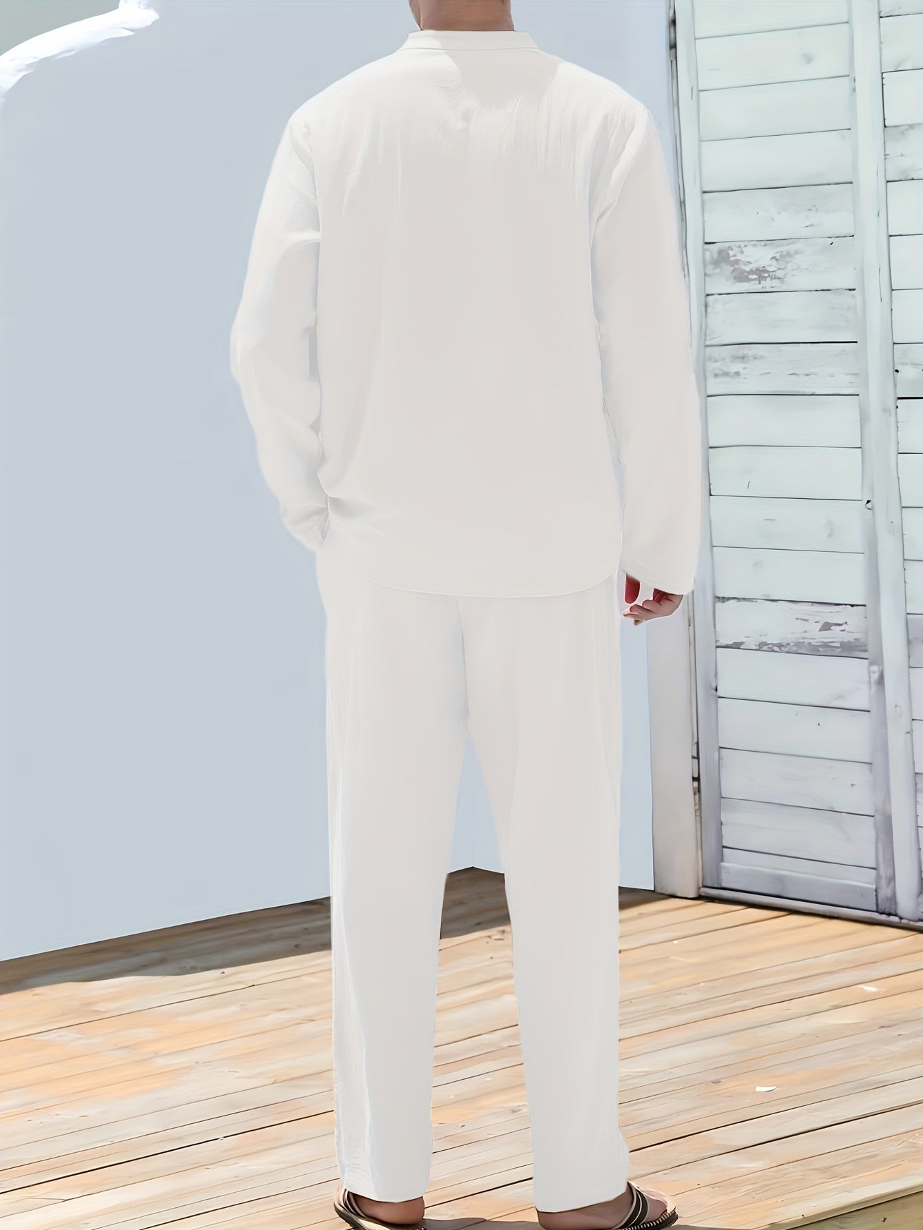 Herren Casual Pure Cotton Woven Trainingsanzug mit Mandarin Kragen Shirt und Hose | Perfekt für Outdoor-Aktivitäten
