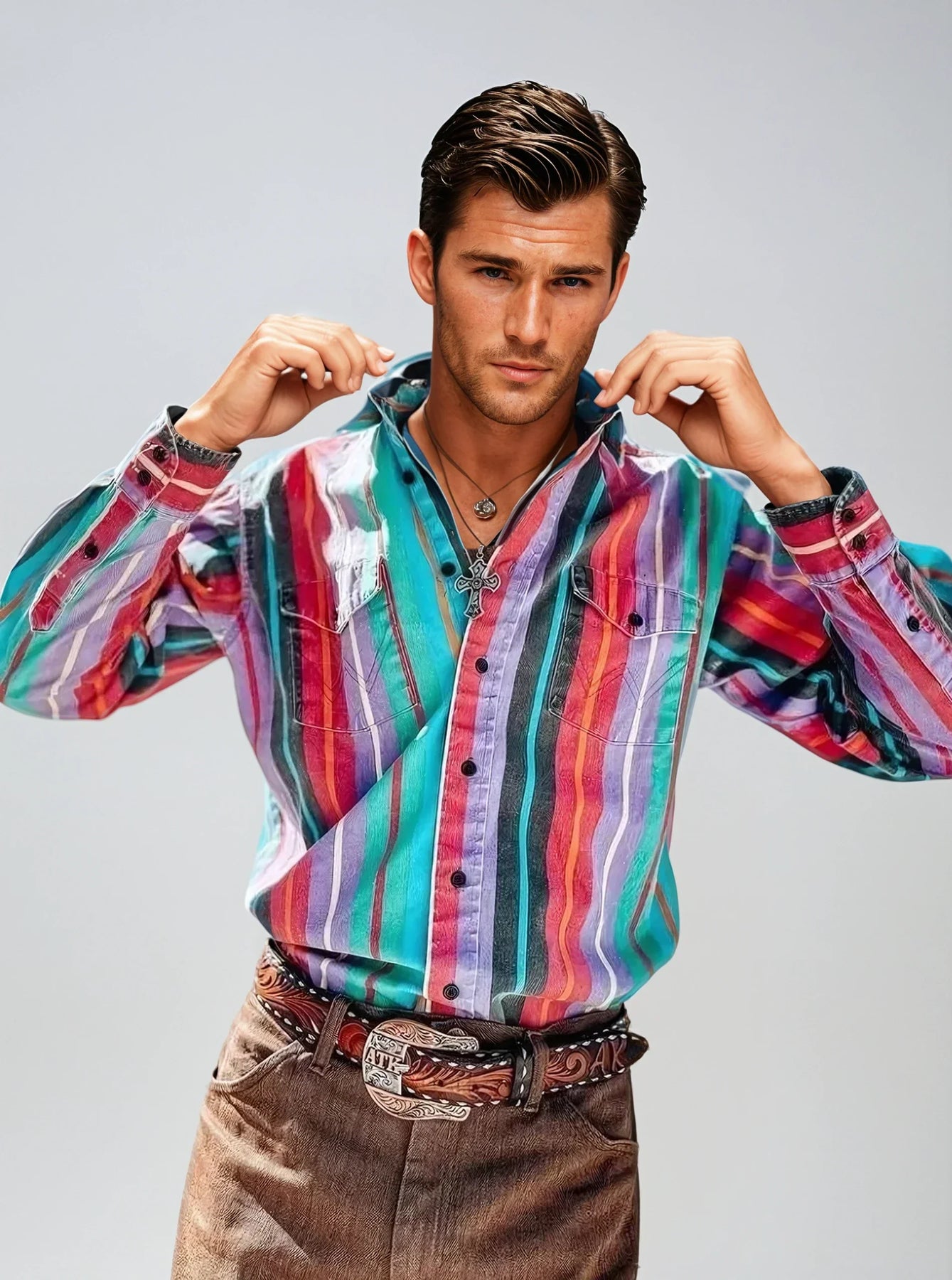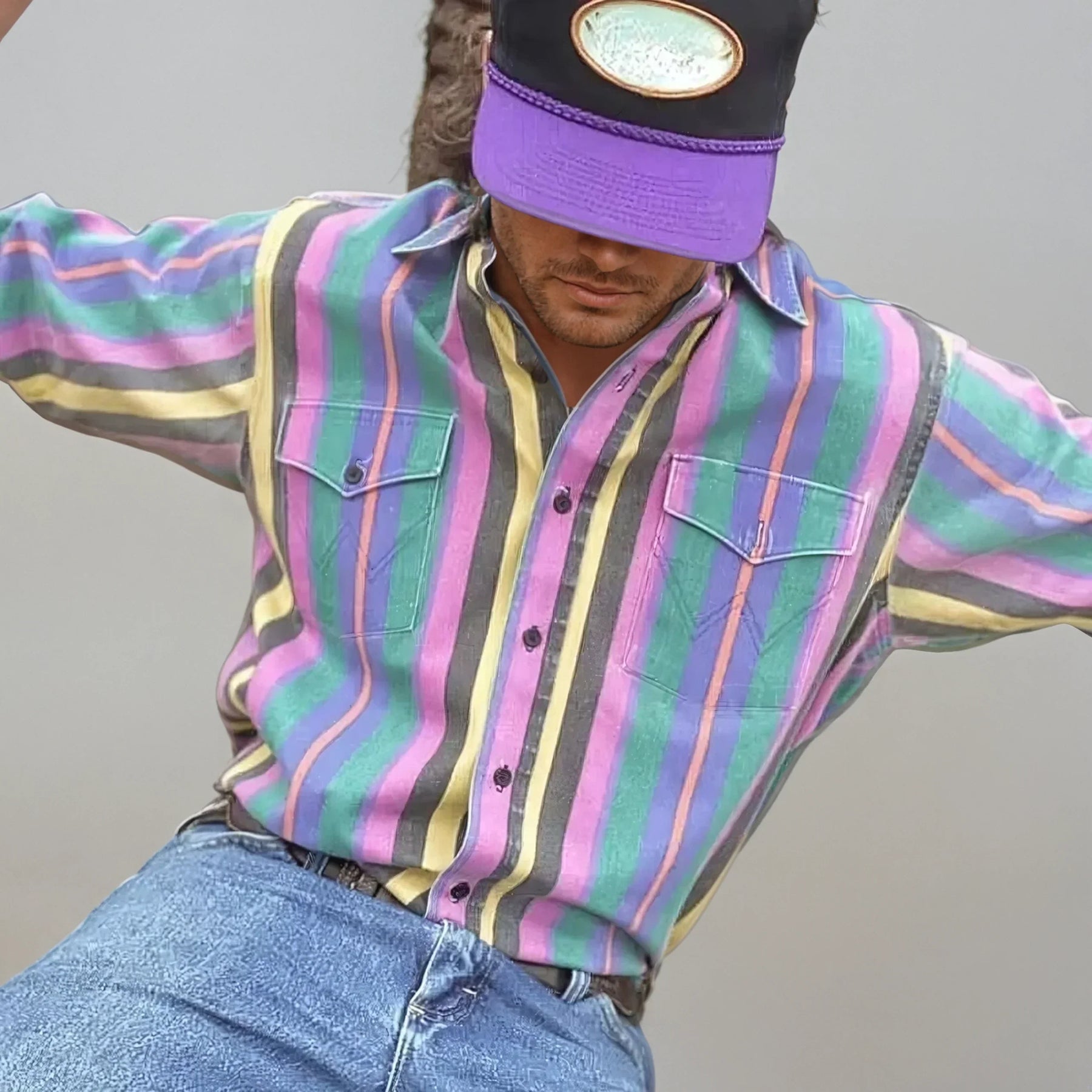 Diese Herren Langarm Streifenhemd vereint Retro-Charme mit modernem Komfort. Mit seinem lebendigen Farbblockmuster ist es die ideale Wahl für Männer, die sowohl stilvoll als auch entspannt auftreten möchten. Perfekt für Freizeitaktivitäten oder entspannte Tage, sorgt dieses Hemd dafür, dass man sich wohlfühlt und gut aussieht.