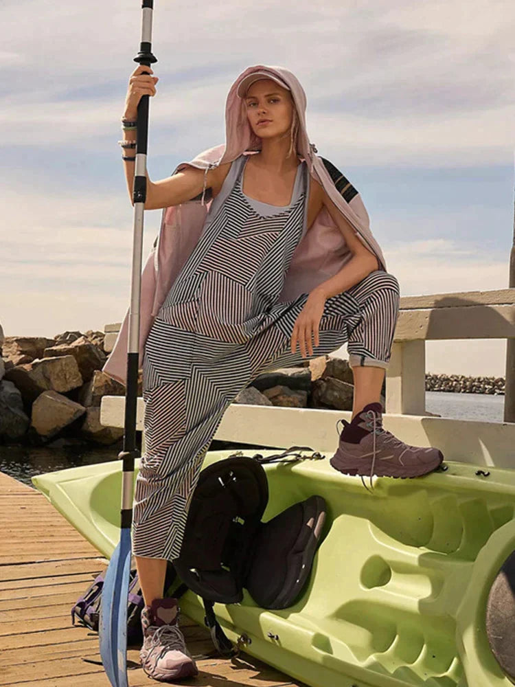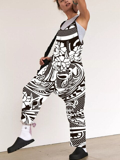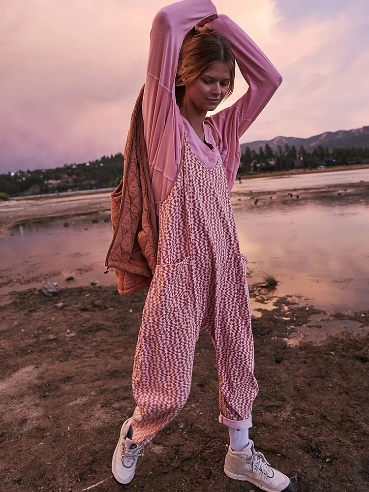 Dieser weiche und bequeme bedruckte Einteiler passt perfekt zu Tagen mit leichter Aktivität oder zum Überziehen nach dem Schwitzen. Er verfügt über ein lockeres, locker sitzendes Design mit tiefem Schritt und praktischen Seitentaschen.