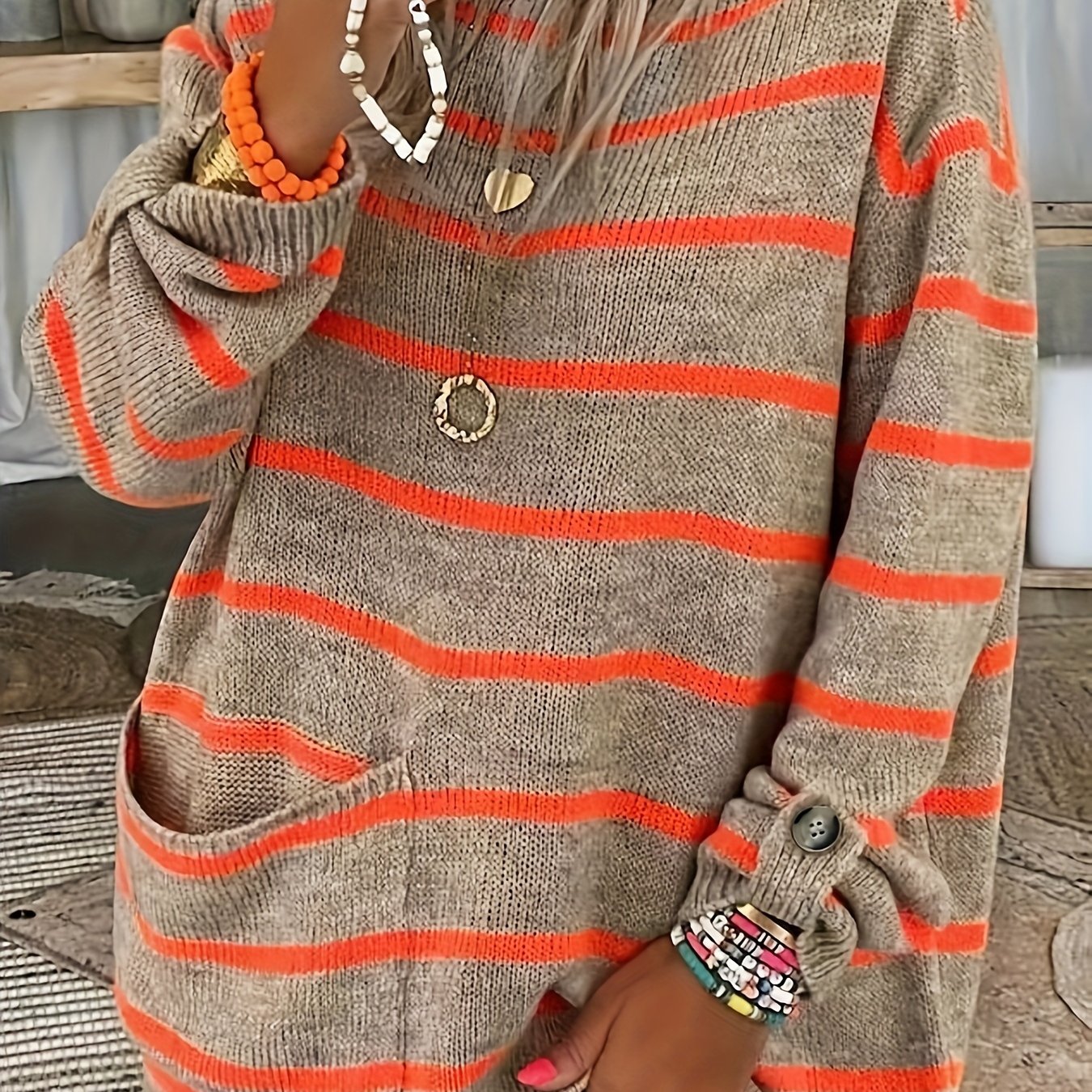 Isa™ – Lässiger Pullover in Übergröße für Damen – Pullover mit Langen Ärmeln, U-Boot-Ausschnitt und Taschen