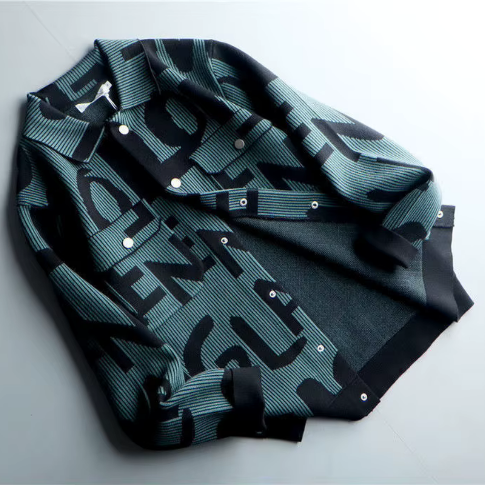 Jakob – Modische Strickjacke mit urbanem Statement-Print