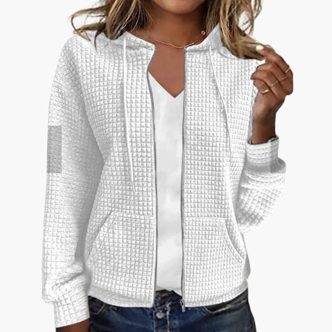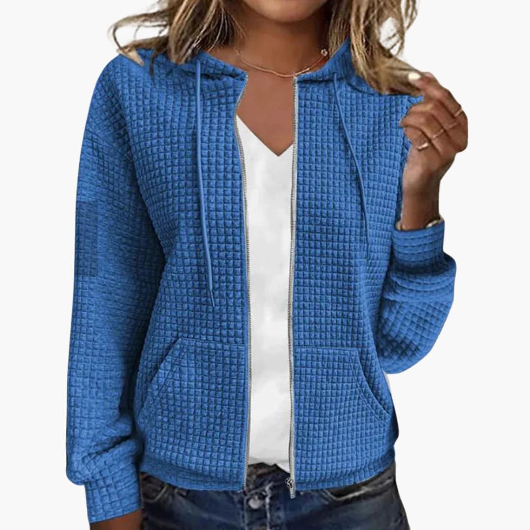 Dieses karierte Jackett für Damen überzeugt durch eine strukturierte Form und eine moderne Optik. Es eignet sich für vielfältige Anlässe und wurde für Frauen entworfen, die ein passendes Kleidungsstück mit klarer Passform und angenehmer Oberfläche suchen.