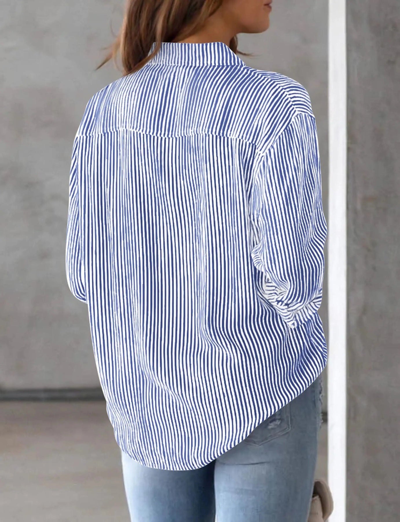 Die Klara® Streifenbluse vereint klassischen Stil mit Komfort. Aus leichtem, atmungsaktivem Material gefertigt, ist sie perfekt für einen eleganten Look im Alltag. Der lockere Schnitt sorgt für Bewegungsfreiheit und der vielseitige Stil macht sie zu einer idealen Wahl für Arbeit und Freizeit.