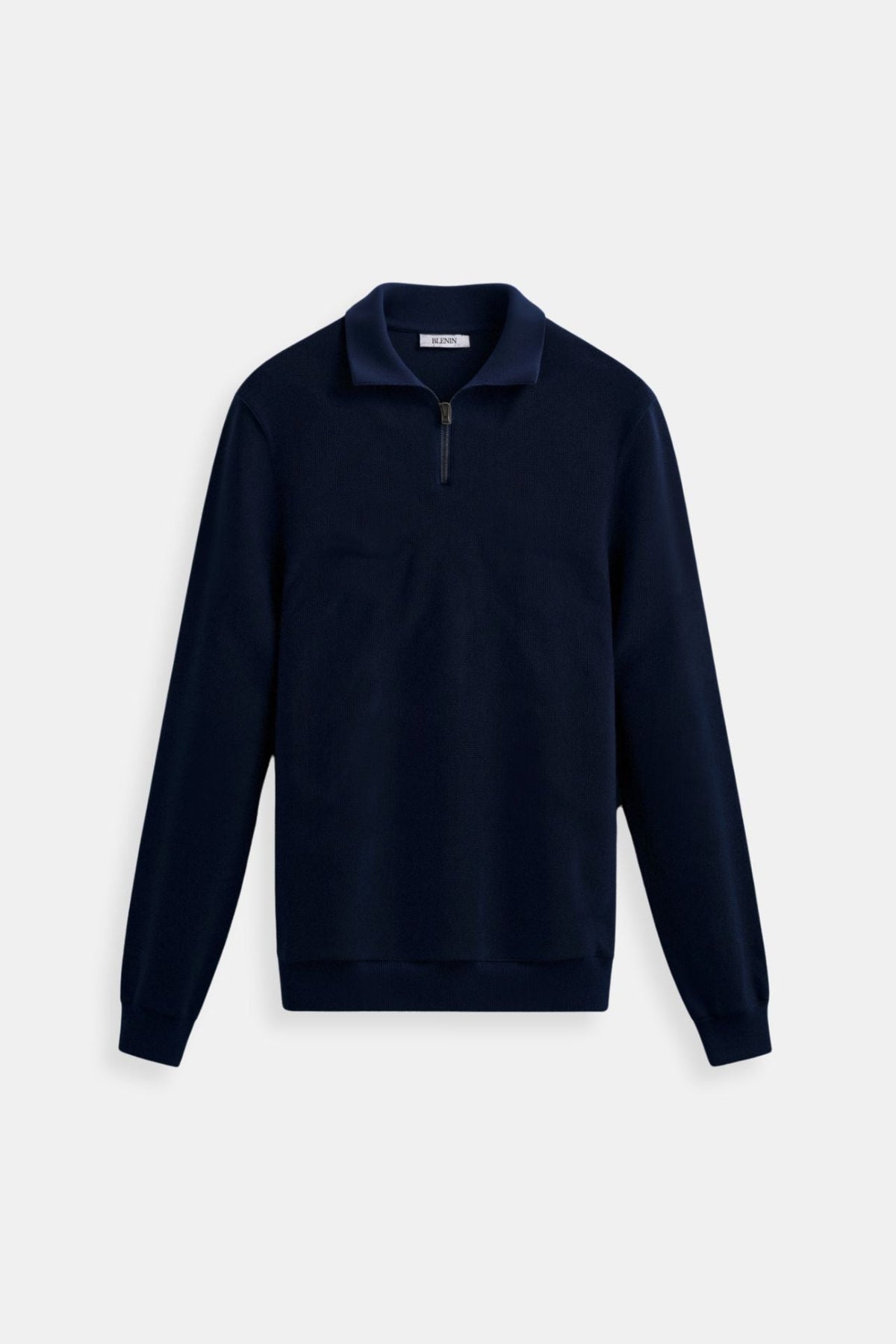 Klassischer Strickpullover mit Reißverschluss & Kontrastkragen