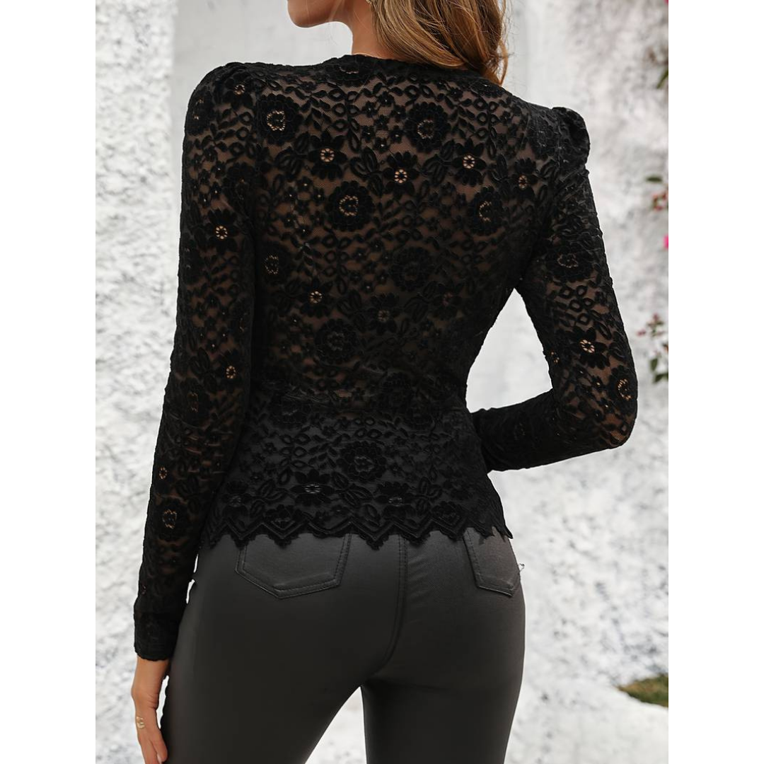 Treten Sie in die Welt der Eleganz ein mit diesem langärmligen Spitzentop für Damen, das jedem Outfit Charme verleiht. Dieses auf Vielseitigkeit ausgelegte Top vereint feine Details mit einer schmeichelhaften Passform, um Ihren Alltagsstil zu unterstreichen. Egal, ob Sie sich für einen Abend schick machen oder es bei der Arbeit schick angehen, dieses Teil ist ein Muss in Ihrer Garderobe.