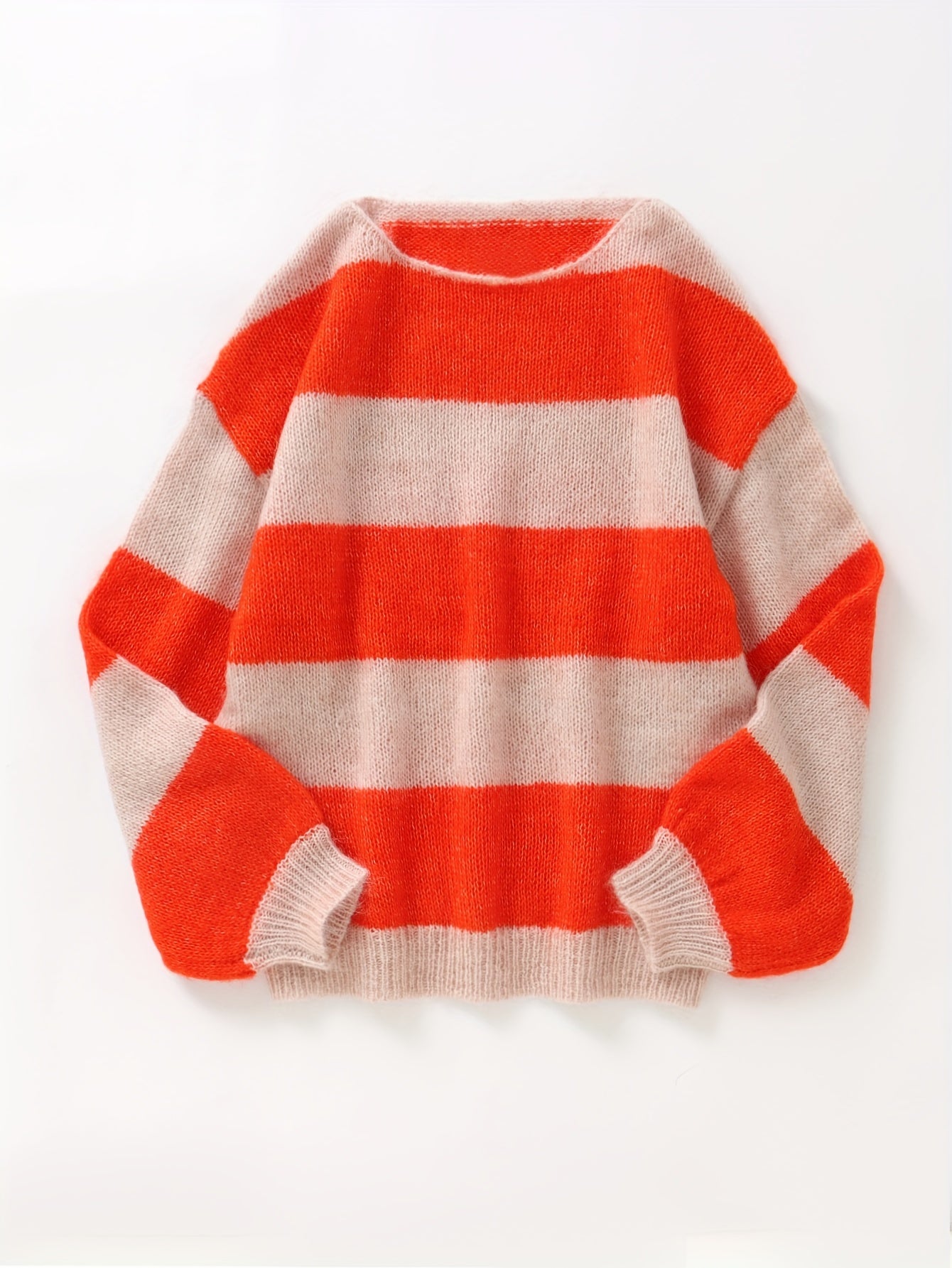 Lässiger Winterpullover aus Baumwolle mit Streifen und Bequemen Langen Ärmeln für Damen | Ideal für den Winter