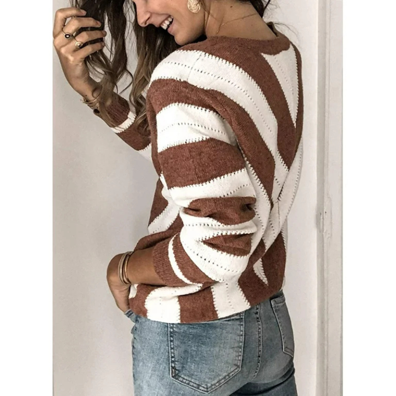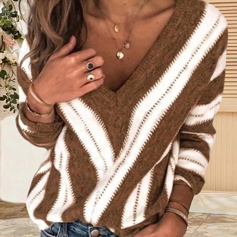 Bleiben Sie stilvoll und gemütlich in dieser Saison mit unserem Winter-Pullover. Mit seiner lockeren Passform und dem V-Ausschnitt bietet dieser mittellange Pullover einen trendigen Suchen und hält Sie gleichzeitig warm. Die klassischen Streifen verleihen ihm einen Hauch von Raffinesse und machen ihn perfekt für lässige Ausgänge. Ergänzen Sie Ihre Wintergarderobe mit diesem vielseitigen Teil!