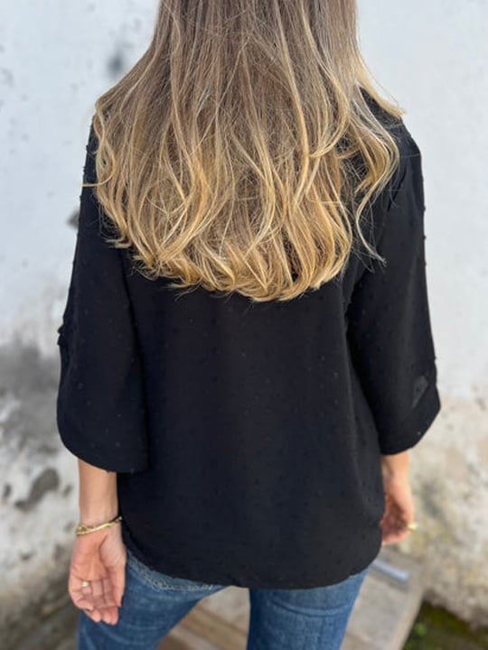 Lyutsiya - Rundhalsausschnitt Bestickt Große Manschetten Freizeithemd