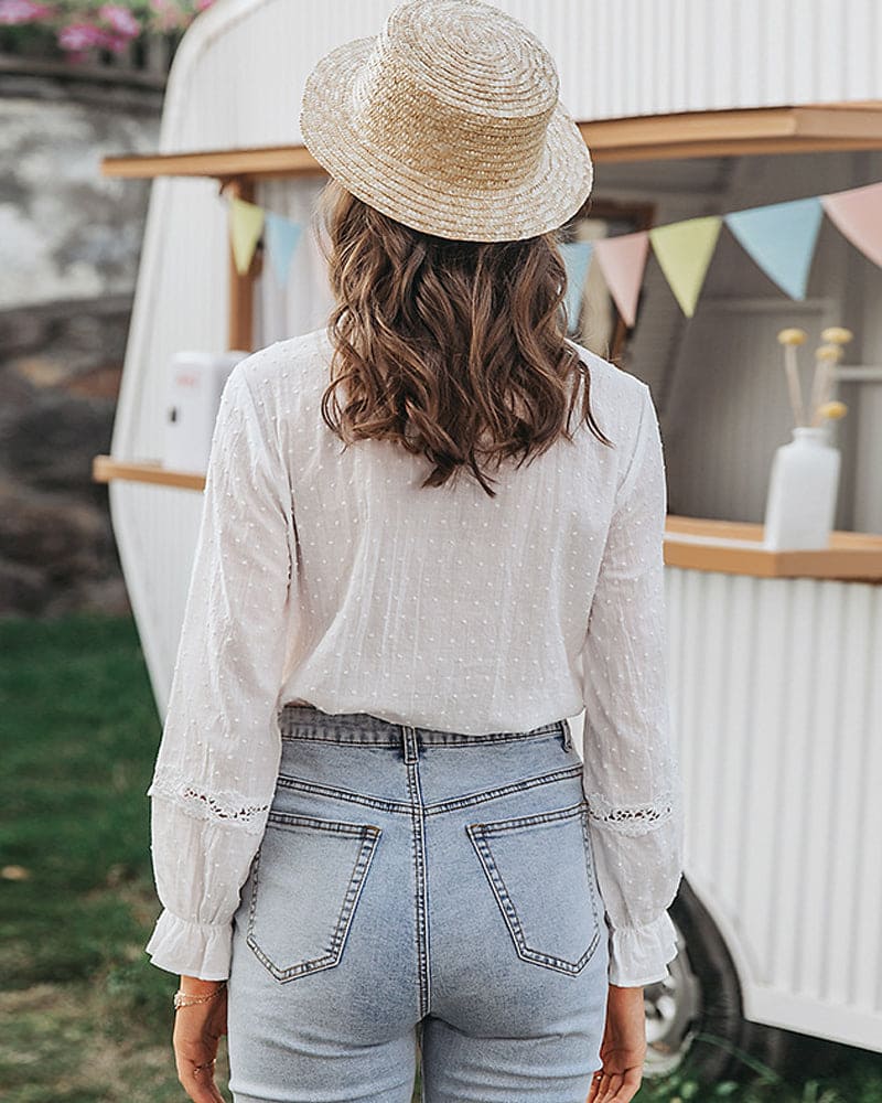 Norma® | Spitzenbluse in einfarbiger Farbe