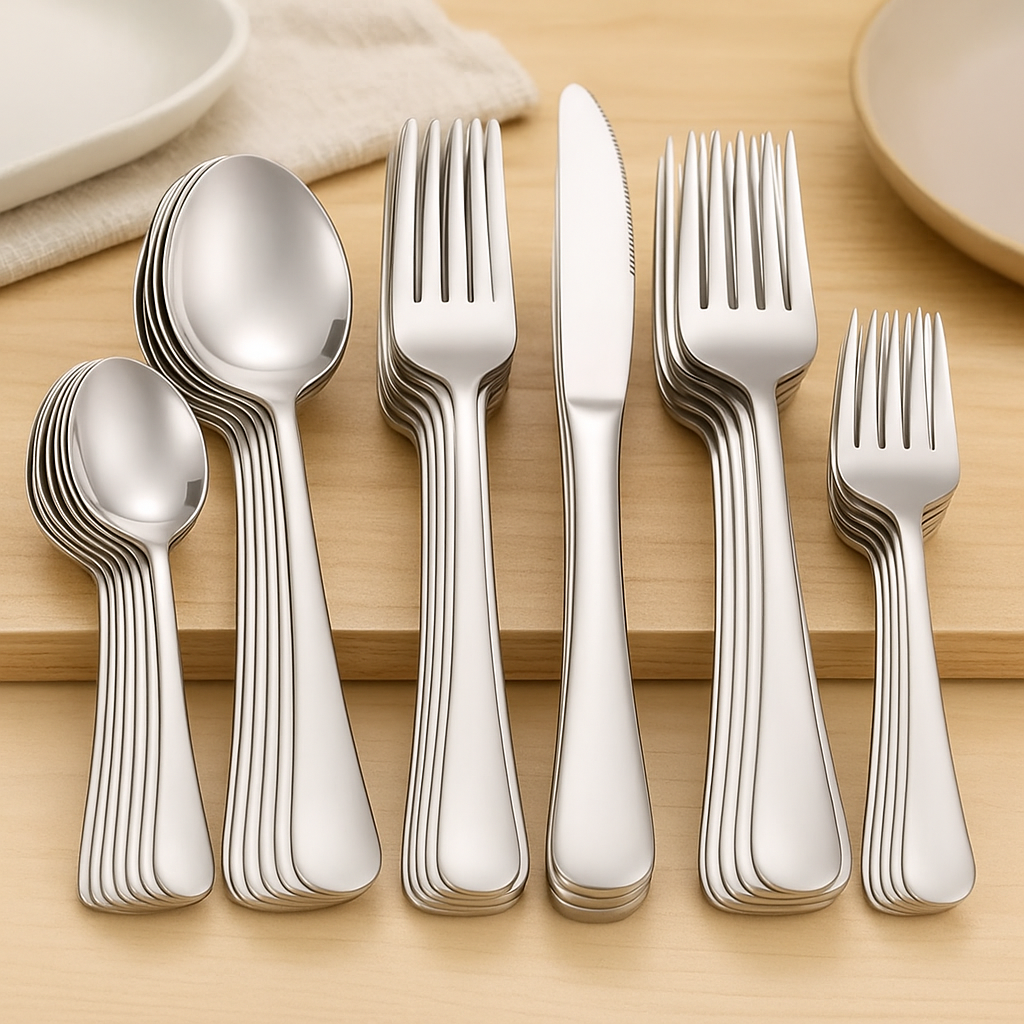 30-teiliges Komplettset – Enthält Tafelmesser, -gabeln, -löffel, -gabeln und -löffel.