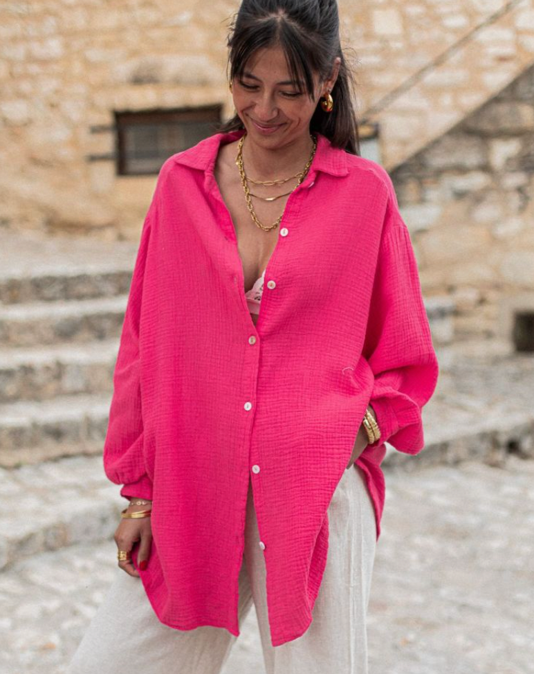 Unsere Produkte sind aus hochwertigen Materialien wie Baumwolle, Seide und Leinen gefertigt. Um die Qualität und Langlebigkeit dieser edlen Stoffe zu bewahren, empfehlen wir, sie bei maximal 30 Grad in der Waschmaschine zu waschen. So bleibt Ihre Kleidung lange schön und fühlt sich immer angenehm auf der Haut an.