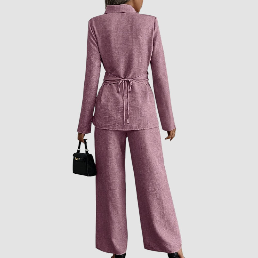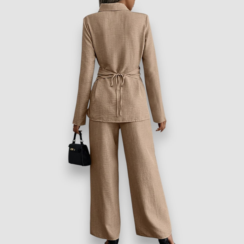 Beherrsche den Raum mit dem Stella-Wide-Leg-2-Teiler – ein Statement-Look, der mühelose Kraft und Eleganz verkörpert. Das taillierte Oberteil und die fließende, weit geschnittene Hose schaffen eine markante Silhouette, die Selbstbewusstsein mit Raffinesse vereint.