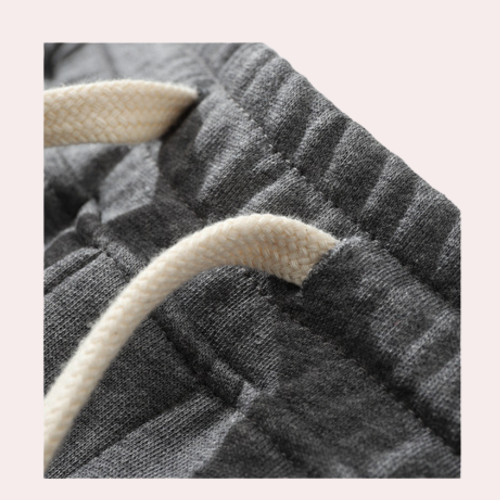 Die weiche Baumwolle sorgt für ein angenehmes Gefühl auf der Haut und Atmungsaktivität, während der elastische Bund mit Kordelzug für eine individuelle Passform sorgt.