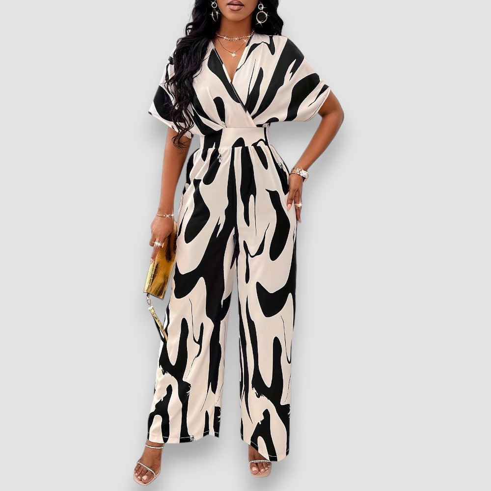 Schreiten Sie in mühelose Raffinesse mit dem Victoria Short Sleeve Jumpsuit – einem vielseitigen, schicken Stück, das perfekt für jede Gelegenheit ist. Die taillierte Passform und die bequemen kurzen Ärmel machen es zur idealen Mischung aus Stil und Komfort.